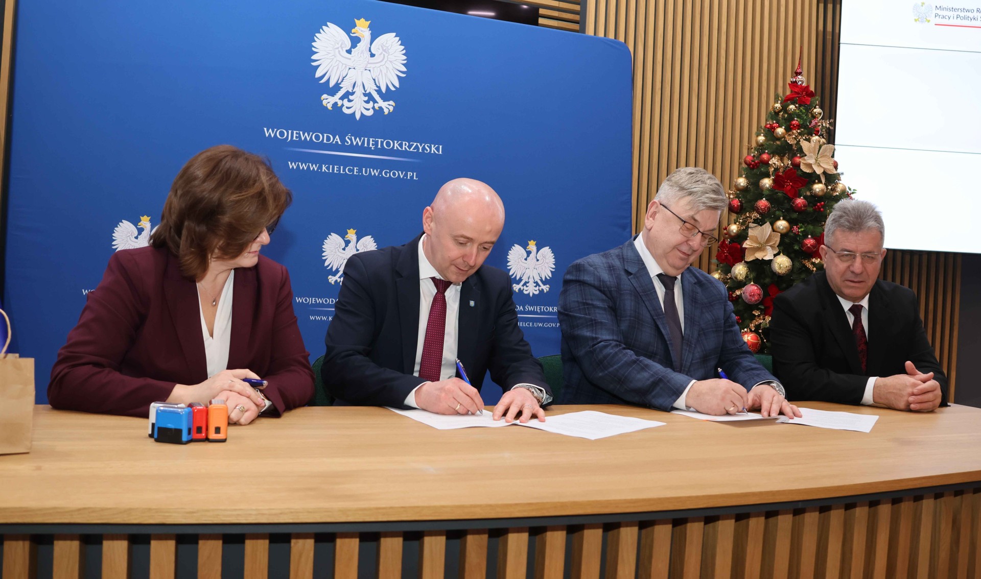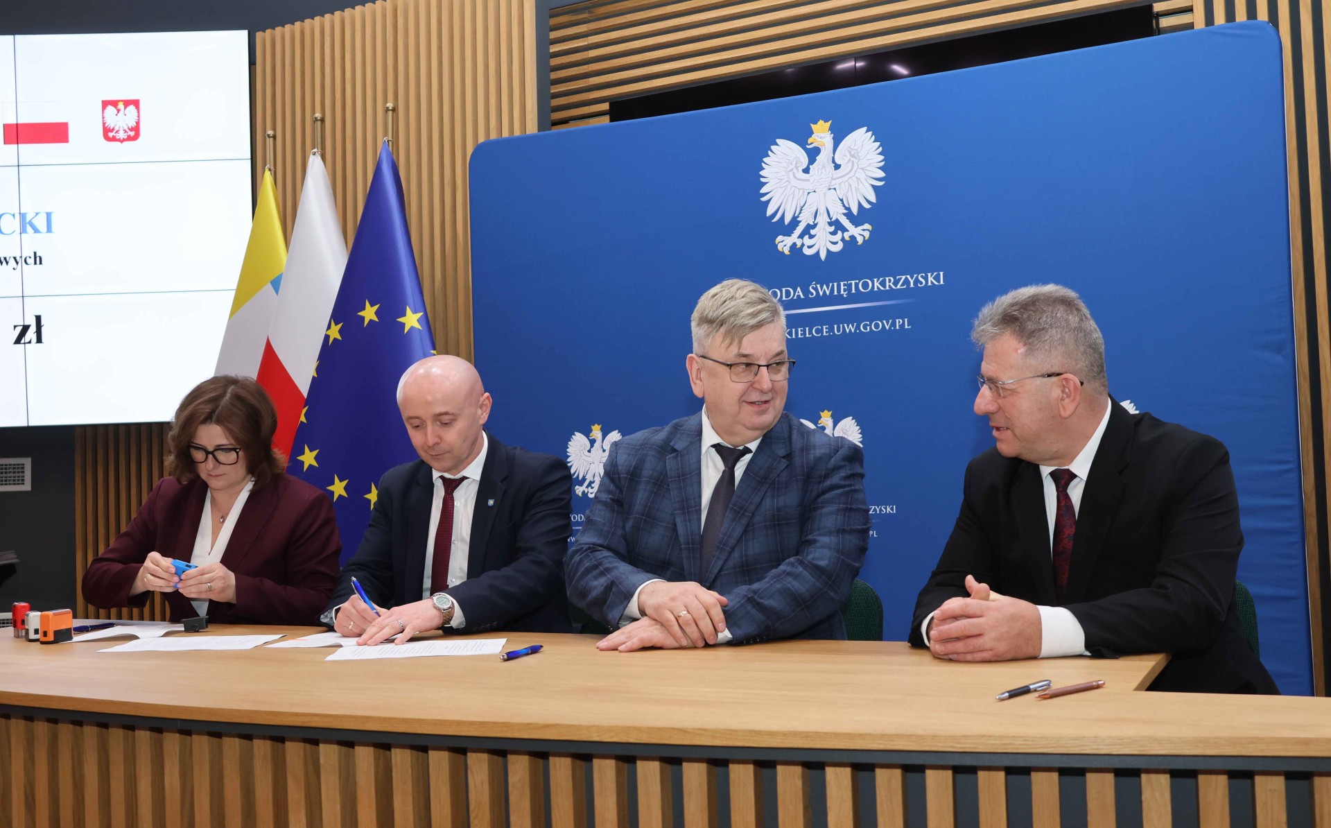 Starosta kielecki Tomasz Pleban, wicestarosta Tomasz Dulny oraz Skarbnik Powiatu Edyta Drążkiewicz podpisali dziś z Wojewodą Świętokrzyskim Józefem Brykiem umowę, w ramach Programu Ministra Rodziny, Pracy i Polityki Społecznej pn. „Asystent osobisty osoby z niepełnosprawnością” dla Jednostek Samorządu Terytorialnego – edycja 2026.