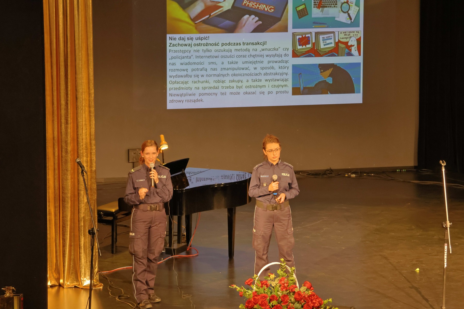 W dalszej części spotkania sierż. Kalina Figacz i mł. asp. Emilia Kuchniak przybliżyły metody współczesnych oszustw internetowych i telefonicznych, ucząc, jak skutecznie się przed nimi chronić. Następnie eksperci z Banku Spółdzielczego w Kielcach – Urszula Karpińska, Izabela Pustół i Tomasz Mierzwa – opowiedzieli o wyzwaniach związanych z bezpieczeństwem w erze sztucznej inteligencji.
