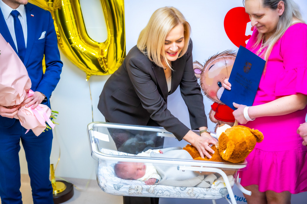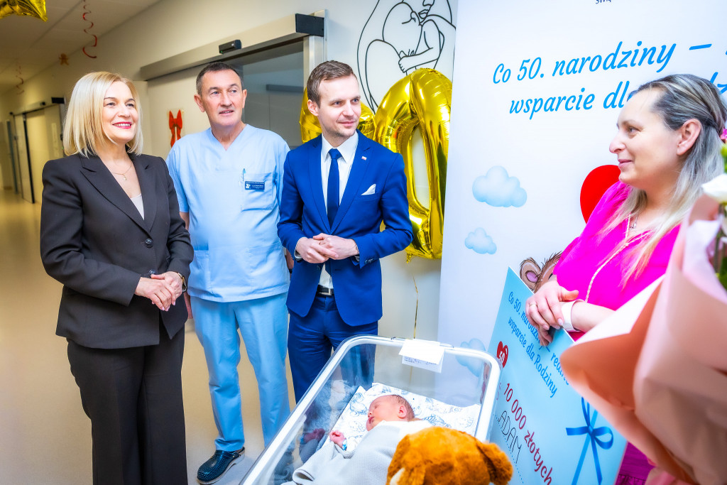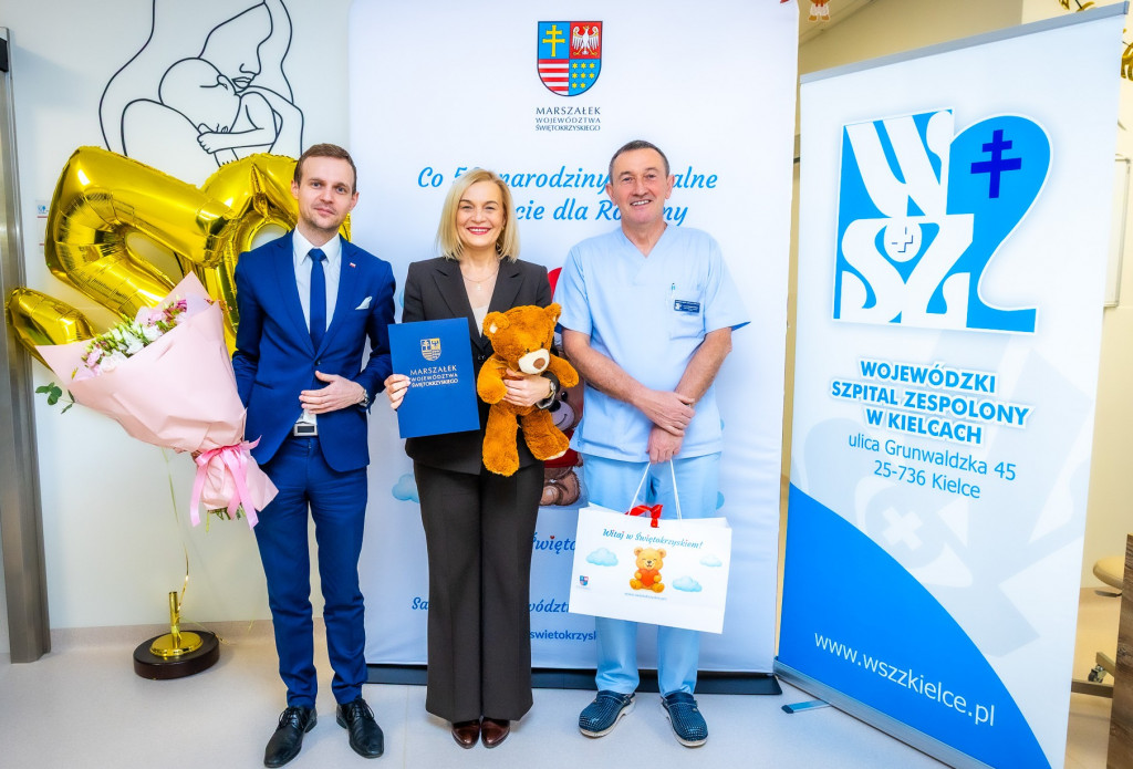 Zaledwie dziewięć dni temu, 13 stycznia, oczy całego regionu zwrócone były na małego Mateusza – pierwszego uczestnika pionierskiego programu „Co 50. narodziny – realne wsparcie dla Rodziny”. Dzisiaj na nowoczesnym bloku porodowym Wojewódzkiego Szpitala Zespolonego (WSzZ) w Kielcach, mama Adasia odebrała z rąk marszałek Renaty Janik wsparcie finansowe, które ma ułatwić im start w nową rolę i zapewnić bezpieczeństwo finansowe w pierwszych wspólnych chwilach. Adaś – to setne dziecka, które przyszło na świat w WSzZ od początku 2026 roku. W wydarzeniu wzięli udział także dyrektor WSzZ w Kielcach Marcin Martyniak oraz kierownik Kliniki Położnictwa i Ginekologii dr nauk medycznych Grzegorz Świercz.
