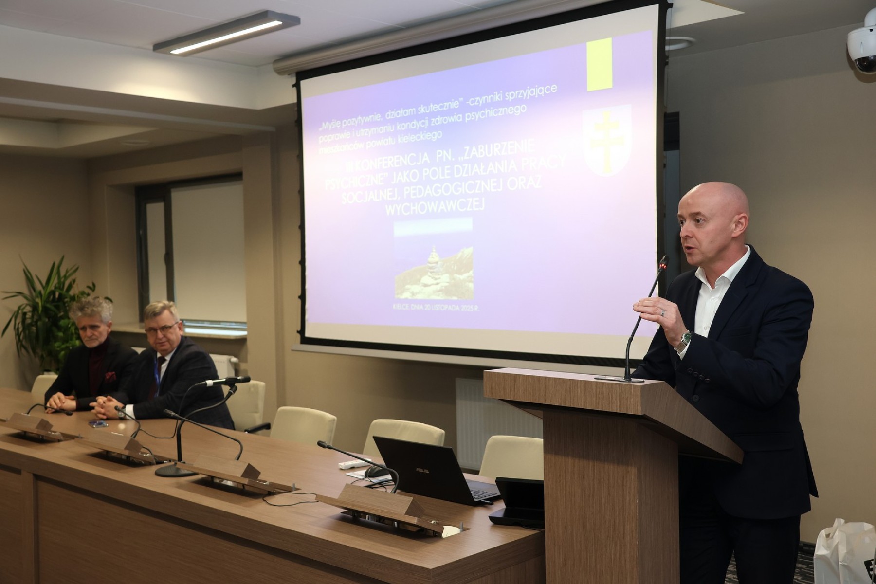 Starosta podkreślił znaczenie konferencji poruszającej kwestie zdrowia psychicznego w różnych aspektach życia, jednocześnie dziękując specjalistom za codzienną pracę na rzecz osób potrzebujących wsparcia.