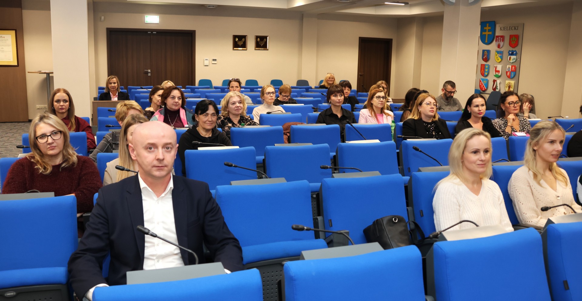 Spotkanie dedykowane było pracownikom socjalnym, asystentom rodziny, pedagogom. Na konferencji obecni byli także przedstawiciele Zespołu koordynującego realizację Programu Ochrony Zdrowia Psychicznego Powiatu Kieleckiego na lata 2024- 2030.