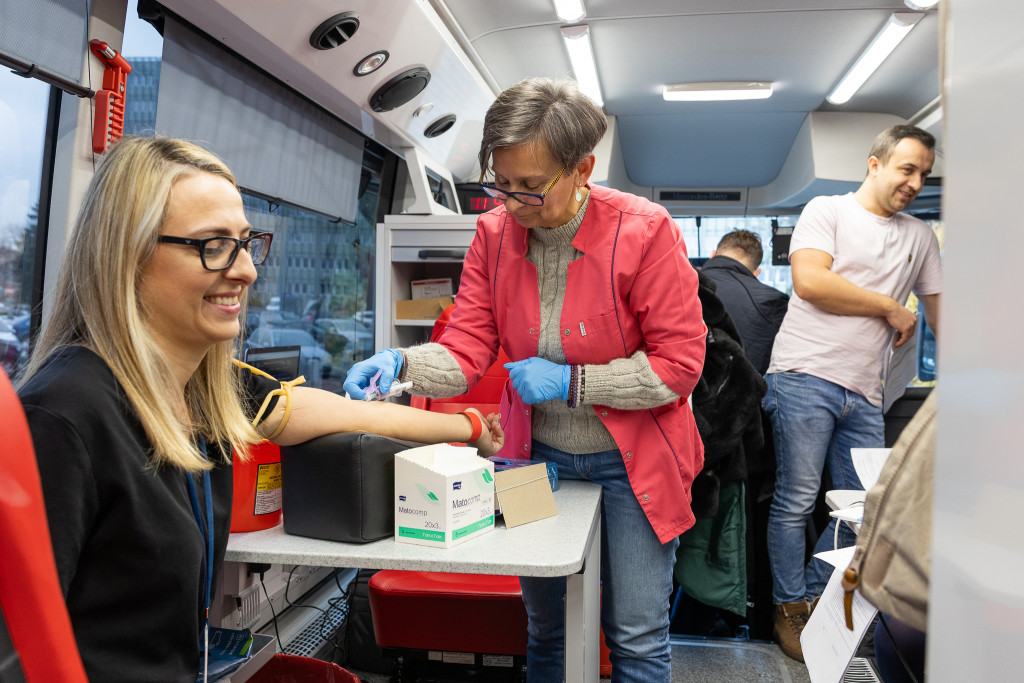 Zgodnie z piękną, wieloletnią tradycją, pracownicy naszego Urzędu po raz kolejny pokazali swoje wielkie serce! Dzisiaj w mobilnym punkcie pobrań na parkingu Urzędu, ponad 40 osób stawiło się, aby oddać krew – bezcenny dar przeznaczony dla małych pacjentów świętokrzyskich szpitali. Tegoroczna zbiórka okazała się jedną z najbardziej udanych akcji w historii. Darczyńcom za niesienie pomocy drugiemu człowiekowi podziękowali i pogratulowali: marszałek Renata Janik, wicemarszałkowie Grzegorz Socha i Marek Bogusławski oraz członek Zarządu Anita Koniusz. Akcja „Krewniacy Mikołaja” trwa nieprzerwanie od 2007 roku.