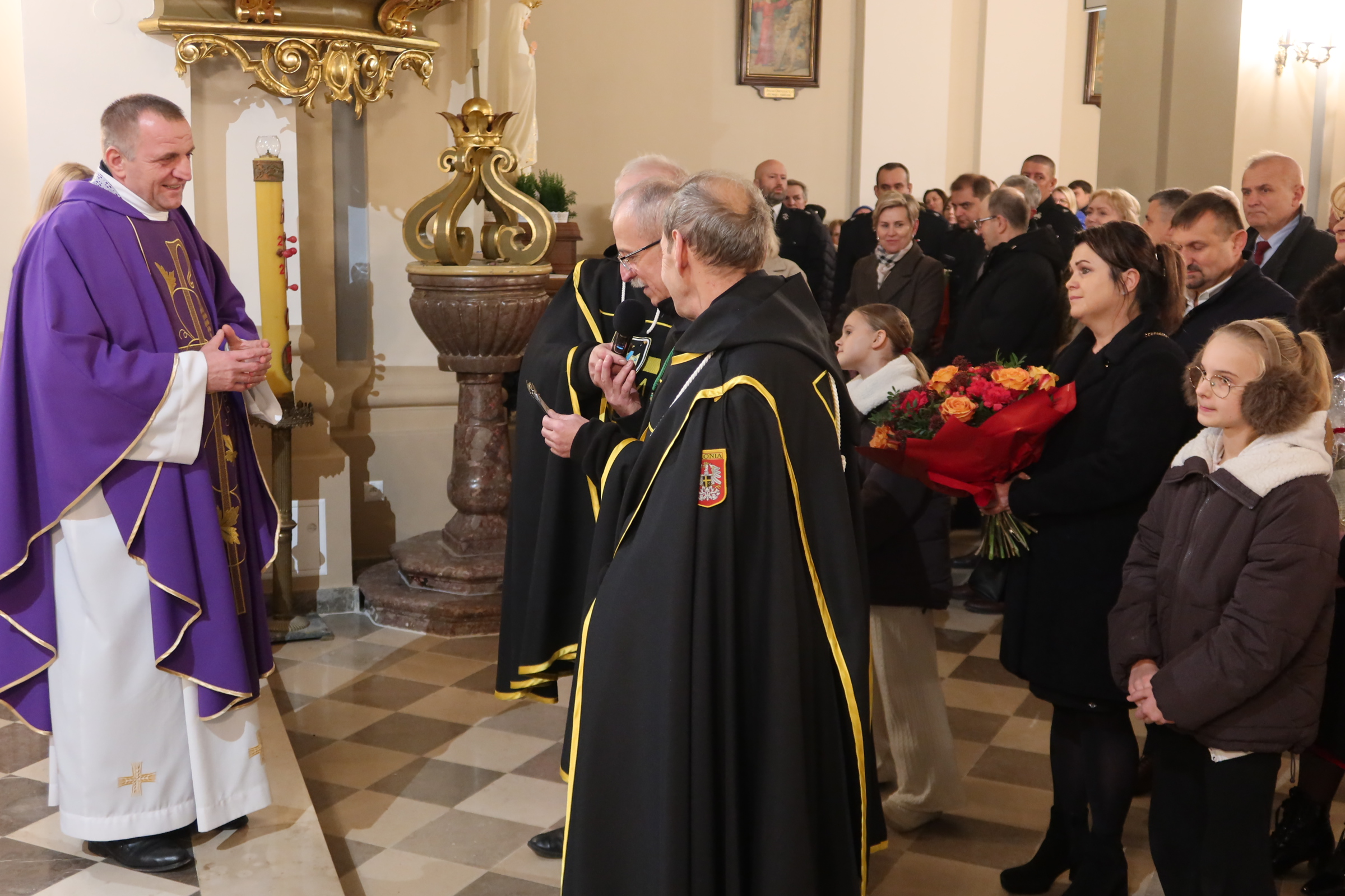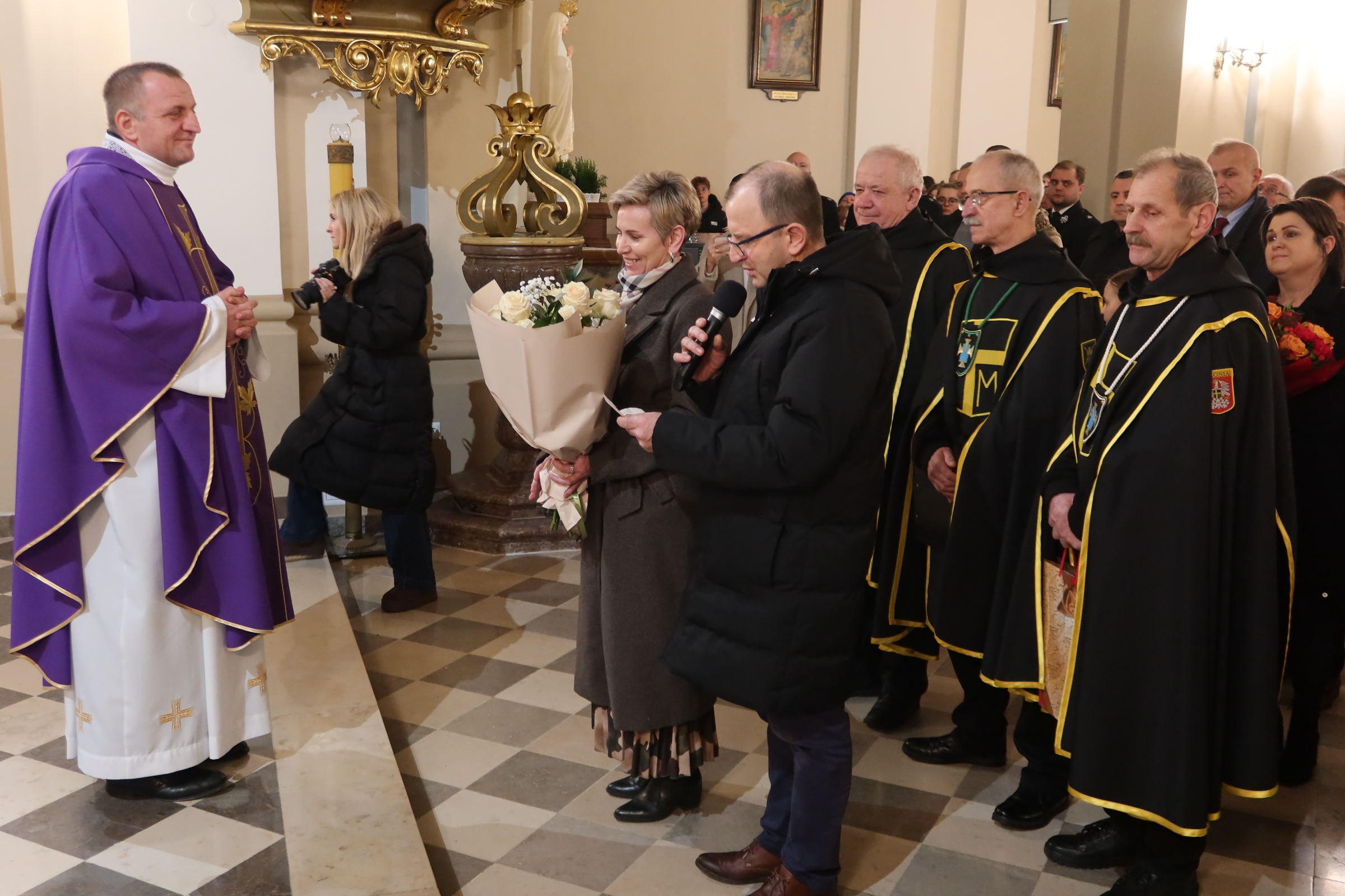 Ważnym elementem uroczystości było także powitanie ks. Wojciecha Skorupy przez przedstawicieli samorządu. Burmistrz Miasta i Gminy Piekoszów Teresa Jakubowska, wspólnie z przewodniczącym Rady Miejskiej Dariuszem Bieliczem oraz radnymi, skierowała do nowego proboszcza słowa serdecznego powitania, odwołując się do słów Pisma Świętego i tym samym podkreślając duchowy wymiar tej chwili. – „I nikt sobie sam nie bierze tej godności, lecz tylko ten, kto jest powołany przez Boga” – słowami z Listu do Hebrajczyków witamy jako samorząd Miasta i Gminy Piekoszów nowego proboszcza naszej parafii. Przyjmujemy księdza Wojciecha Skorupę z wdzięcznością i nadzieją, życząc obfitości darów Ducha Świętego oraz nieustannej opieki Maryi – Matki Bożego Miłosierdzia, patronki tego Sanktuarium, która prowadzi ku świętości i umacnia w codziennej posłudze – mówiła burmistrz, Teresa Jakubowska.