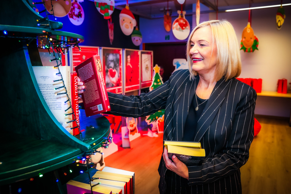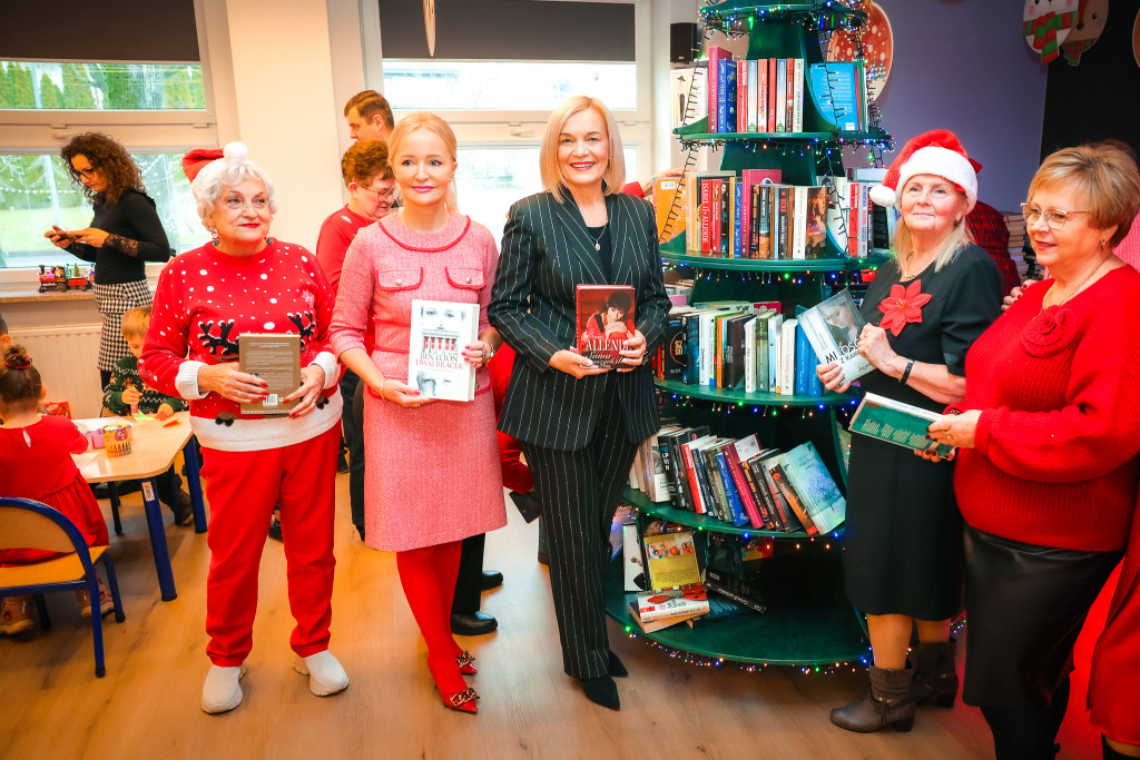 Marszałek Renata Janik wraz z Dyrektor Biblioteki Agnieszką Kuś, seniorami oraz przedszkolakami z entuzjazmem włączyła się w tworzenie tej literackiej ozdoby. – Choinka z książek – choć inna niż te, które znamy – ma w sobie coś absolutnie wyjątkowego. Łączy to, co świąteczne, z tym, co najważniejsze dla naszej biblioteki i dla całego regionu: miłość do książek, rozwijanie pasji czytelniczych i budowanie więzi między pokoleniami. – mówiła Renata Janik.