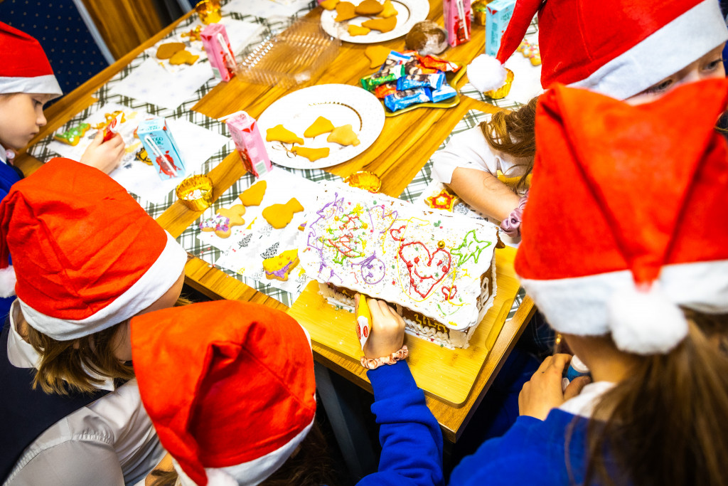 Finałem dzisiejszego wydarzenia było wspólne ubieranie choinki przygotowanymi przez dzieci ozdobami i własnoręcznie zdobionymi pierniczkami. To był wyjątkowy, pełen wzruszeń moment, który jeszcze mocniej wprowadził wszystkich w świąteczny nastrój.