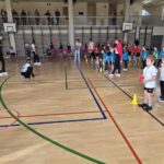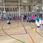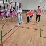 Od samego rana w szkole panowała wyjątkowa atmosfera. Z korytarzy rozbrzmiewały okrzyki dopingu, a najmłodsi sportowcy z zapałem przystępowali do kolejnych konkurencji. Dzieci rywalizowały w biegu z przenoszeniem piłek, biegu z przekładaniem szarfy, skoku w dal z miejsca oraz w rzutach woreczkami do celu. Towarzyszyły im ogromne emocje, uśmiechy i ogromna dawka dobrej energii. Nie zabrakło także wspaniałego dopingu. Uczniowie młodszych klas kibicowali swoim kolegom z ogromnym entuzjazmem, a zespół cheerleaderek z klas I–III dodał wydarzeniu wyjątkowego uroku.