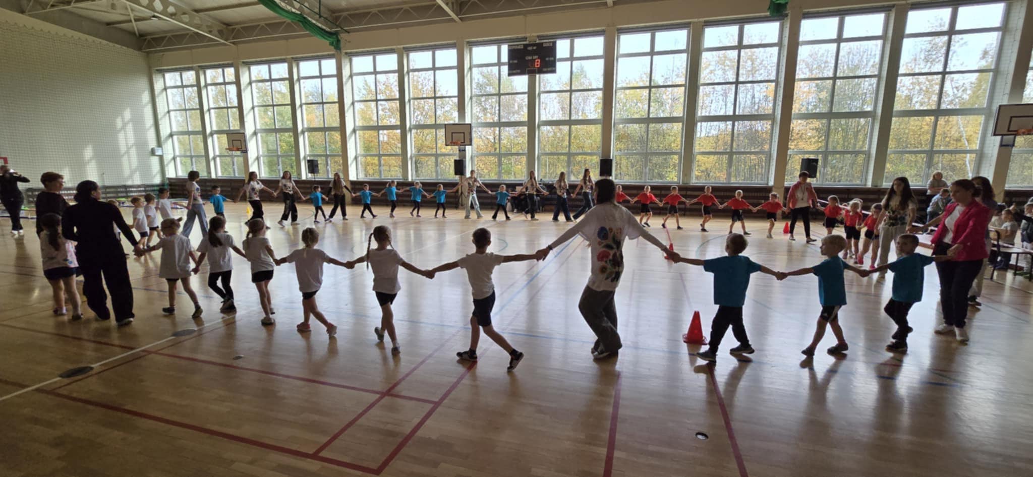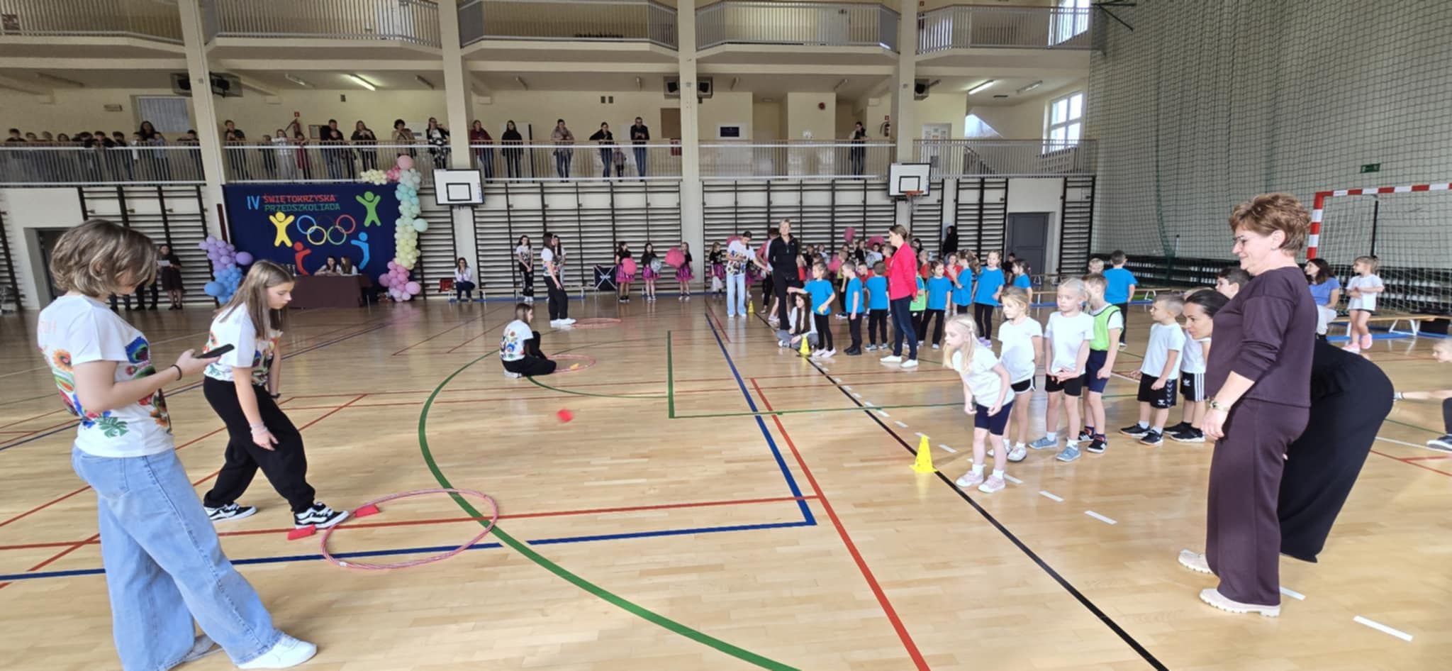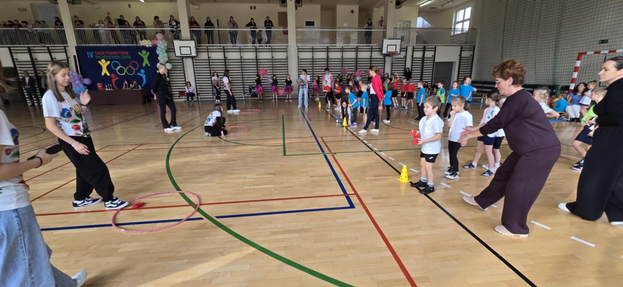 Od samego rana w szkole panowała wyjątkowa atmosfera. Z korytarzy rozbrzmiewały okrzyki dopingu, a najmłodsi sportowcy z zapałem przystępowali do kolejnych konkurencji. Dzieci rywalizowały w biegu z przenoszeniem piłek, biegu z przekładaniem szarfy, skoku w dal z miejsca oraz w rzutach woreczkami do celu. Towarzyszyły im ogromne emocje, uśmiechy i ogromna dawka dobrej energii. Nie zabrakło także wspaniałego dopingu. Uczniowie młodszych klas kibicowali swoim kolegom z ogromnym entuzjazmem, a zespół cheerleaderek z klas I–III dodał wydarzeniu wyjątkowego uroku.