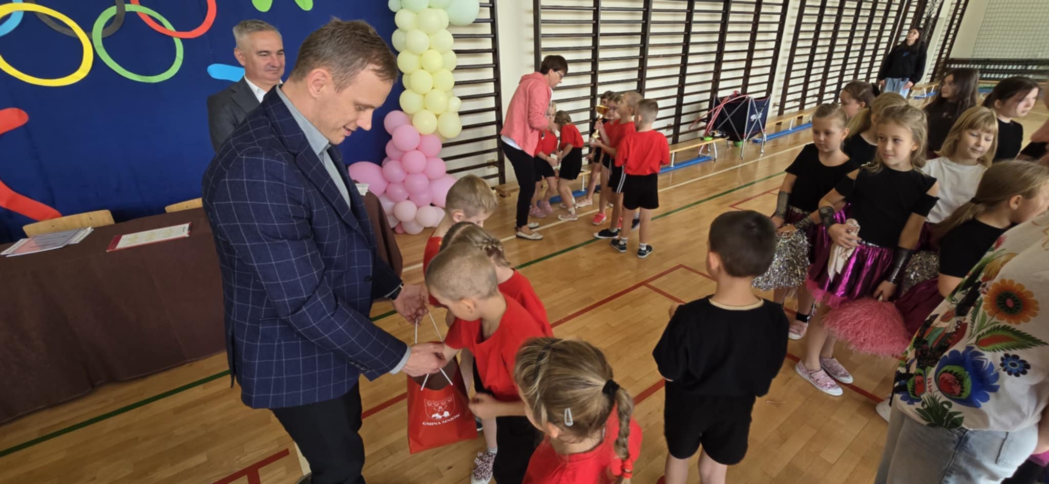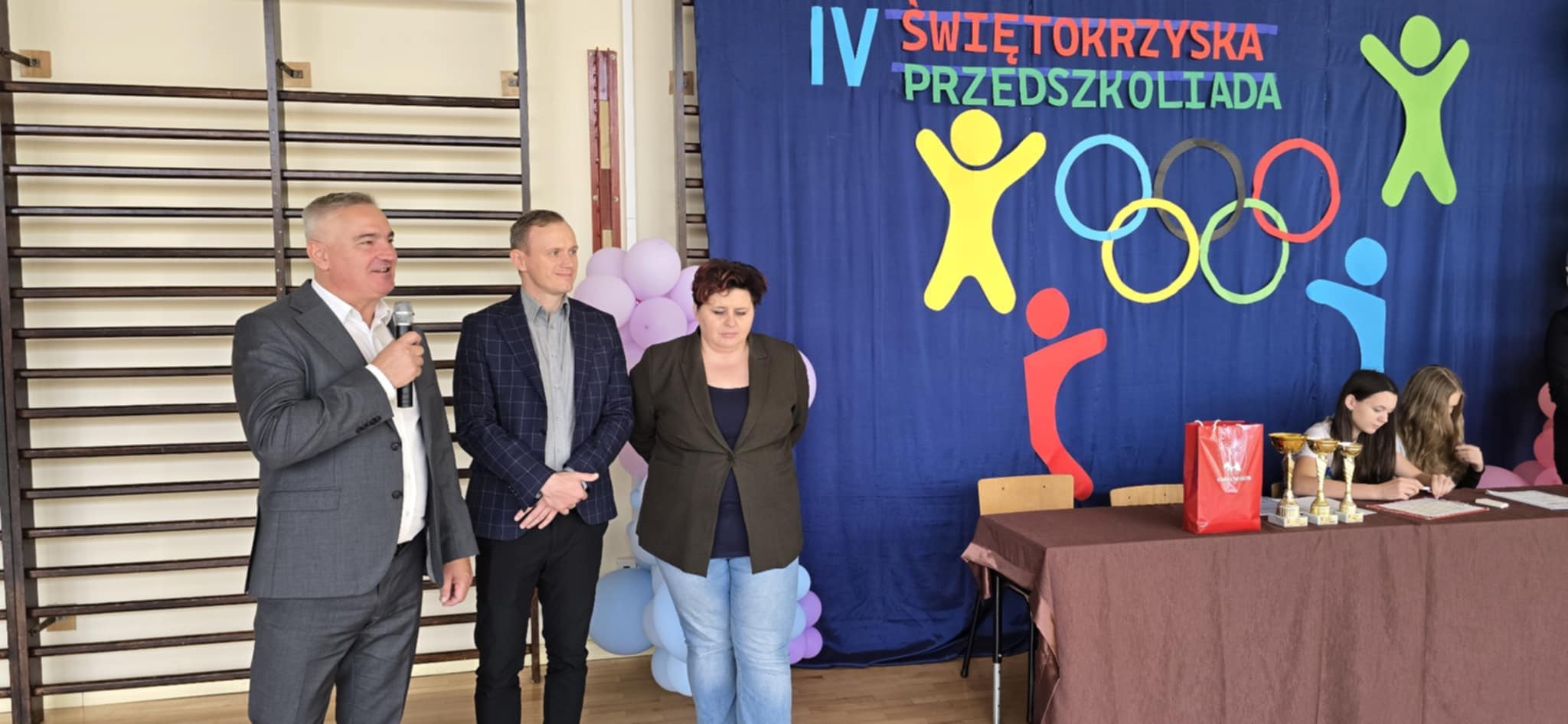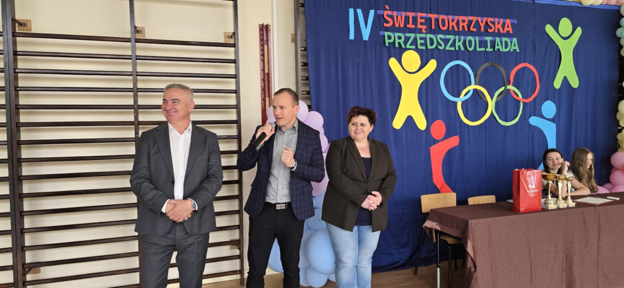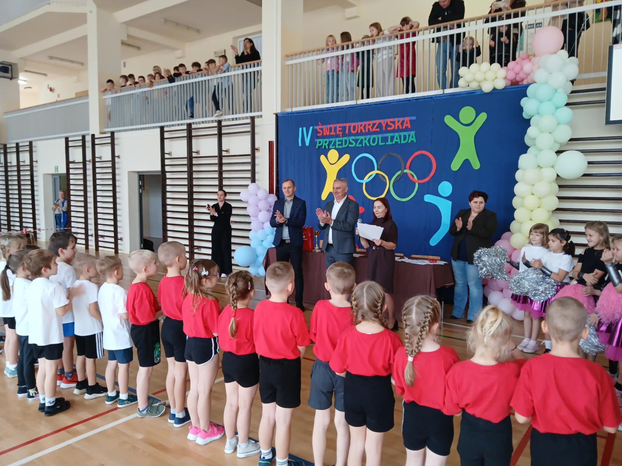 Fundatorem pucharów był Wójt Gminy Mniów Piotr Wilczak, który wraz z wicewójtem Michałem Milcarzem pogratulowali uczestnikom i wręczyli nagrody. – Świętokrzyska Mini Olimpiada Przedszkolaka to jedno z tych wydarzeń, które pokazują, jak wielką wartość ma sport w wychowaniu najmłodszych. Patrząc na uśmiechnięte twarze dzieci, ich emocje i ogromne zaangażowanie, trudno nie czuć dumy. To właśnie w takich chwilach kształtują się pierwsze sportowe pasje, ale też ważne postawy takie jak chociażby współpraca, uczciwość, szacunek do innych i radość z podejmowania wyzwań. Cieszę się, że przedszkola z naszej gminy tak aktywnie uczestniczą w tej inicjatywie, bo dzięki temu od najmłodszych lat uczymy dzieci, że ruch i aktywność fizyczna to nie tylko zdrowie, ale też sposób na budowanie więzi i jedności.