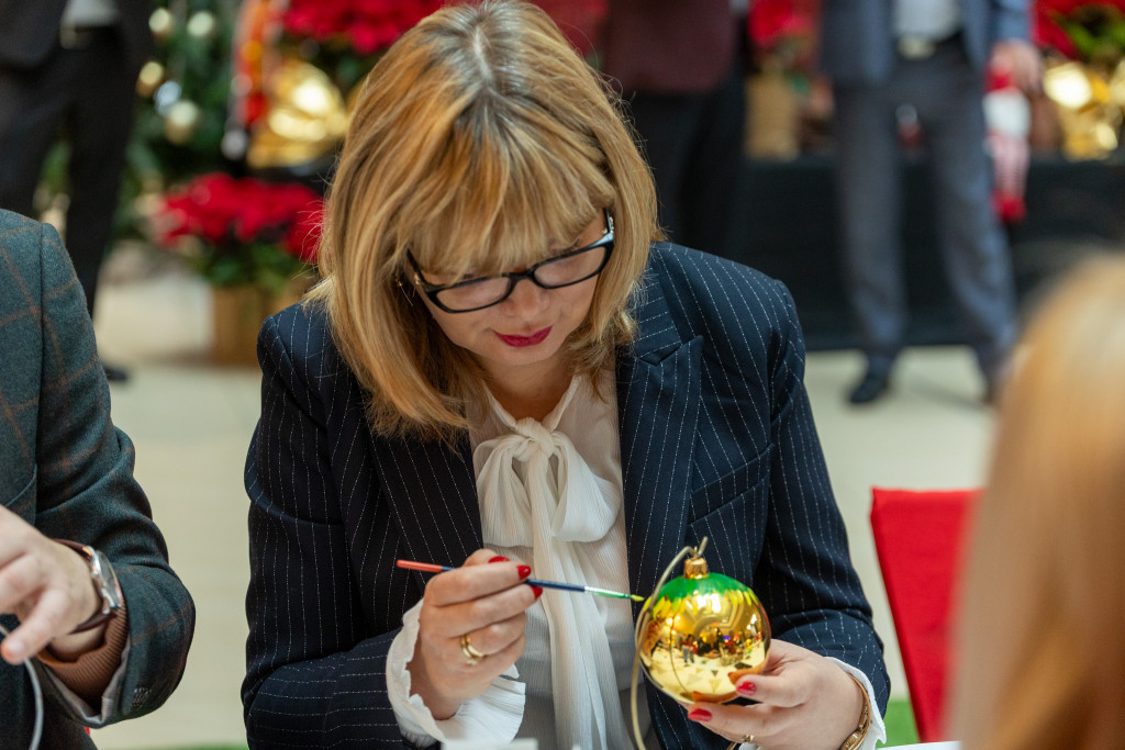 Marszałek Renata Janik przygotowała własnoręcznie ozdobioną kolorową bombkę choinkową. Przygotowane tego dnia ozdoby trafiły na licytację. Dochód ze sprzedaży prac oraz stroików świątecznych zostanie przeznaczony na pomoc chorej na glejaka Paulinie Łozińskiej oraz – jak co roku – na wsparcie Polskiego Stowarzyszenia na Rzecz Osób z Niepełnosprawnością Koło w Kielcach. Zebrane fundusze pomogą w zakupie nowoczesnego sprzętu rehabilitacyjnego.