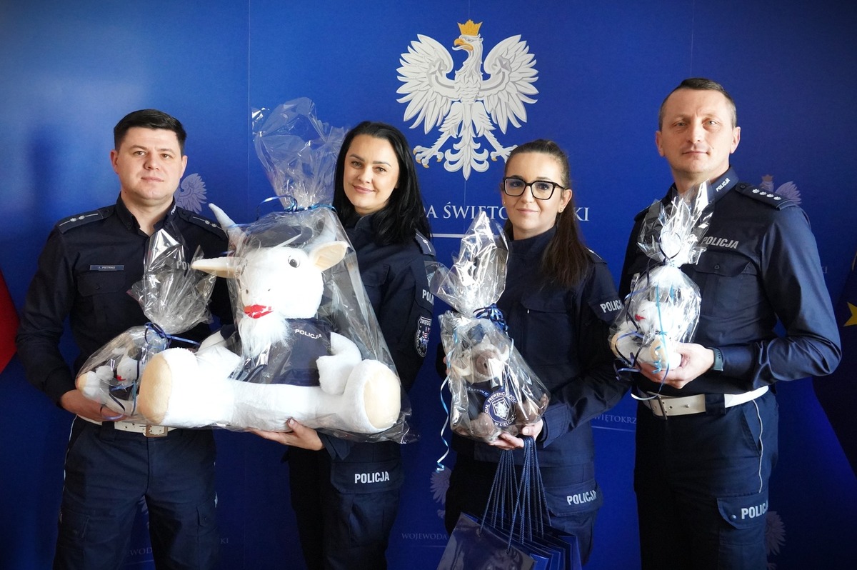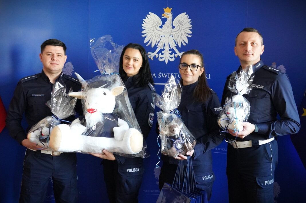 Funkcjonariusze z Komendy Wojewódzkiej Policji w Kielcach przekazali rzeczy na niedzielną licytację. Do Wielkiej Orkiestry Świątecznej Pomocy trafiły między innymi charakterystyczne maskotki świętokrzyskiej policji – koziołki Spoko.