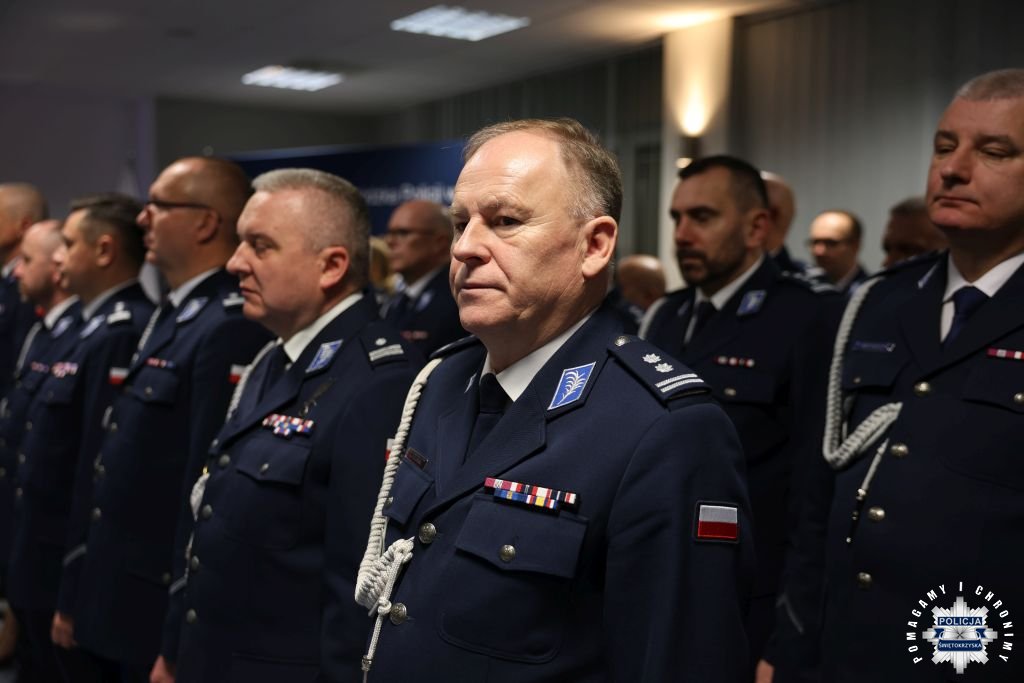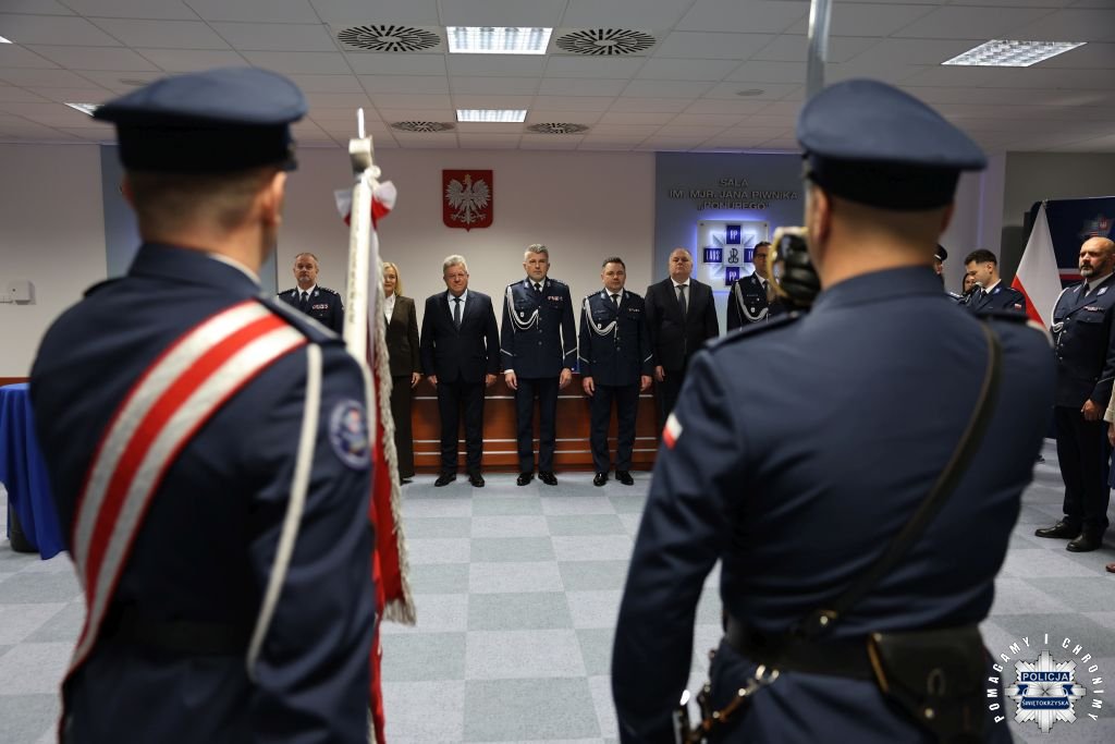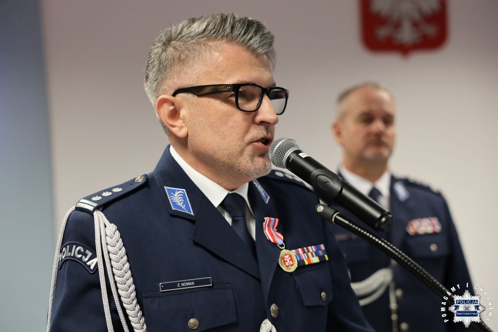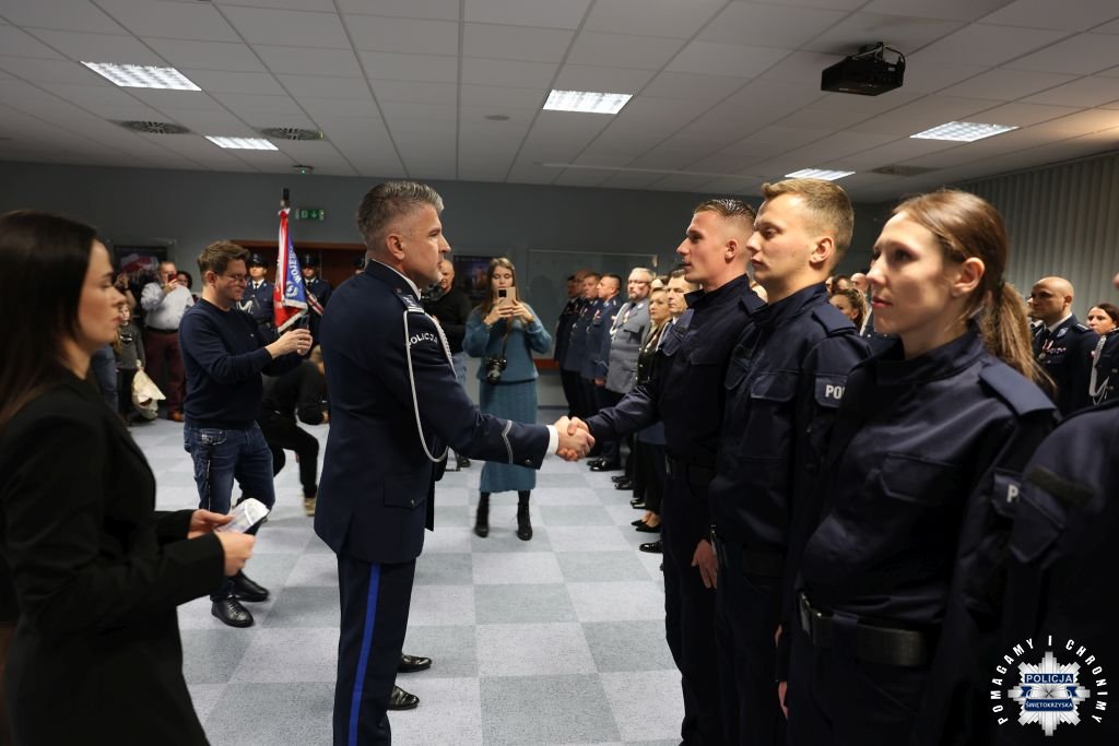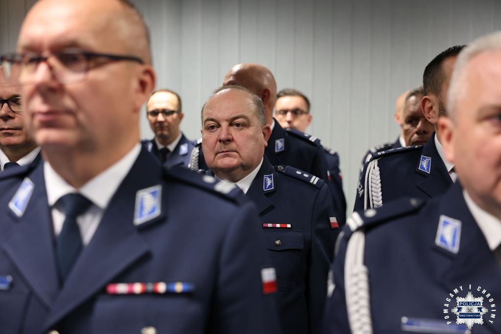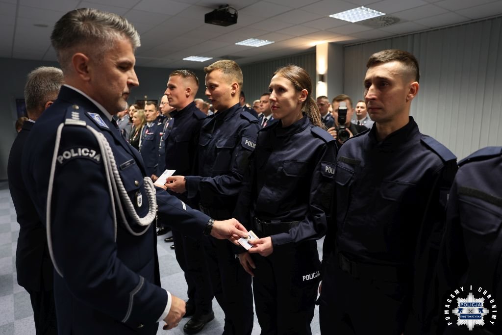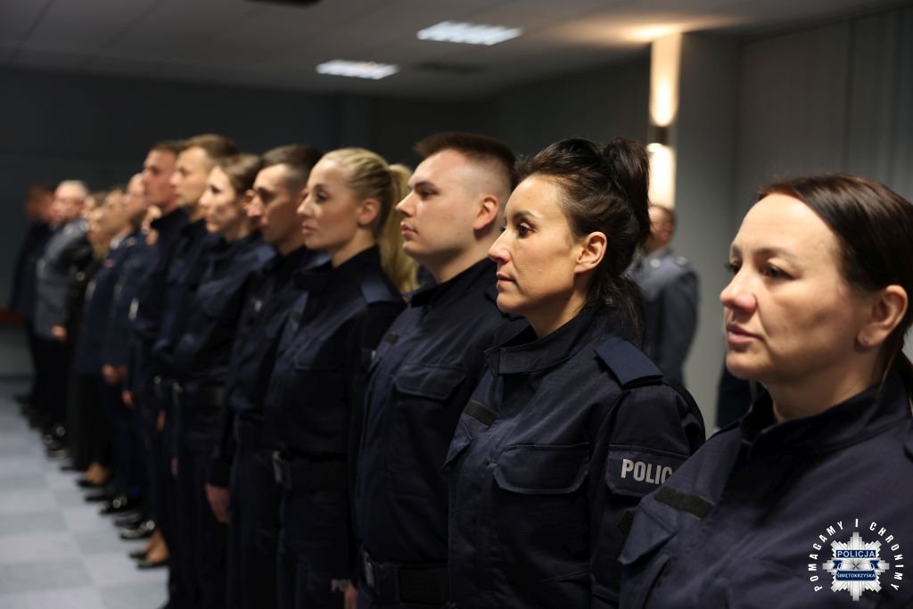 Niezwykle istotnym punktem dzisiejszej uroczystości było ślubowanie nowo przyjętych funkcjonariuszy. Ośmiu policjantów powitał dziś komendant w naszych szeregach. Przed nimi szkolenie zawodowe podstawowe, po którym, za kilka miesięcy, powrócą by pełnić codzienną służbę w naszym garnizonie.