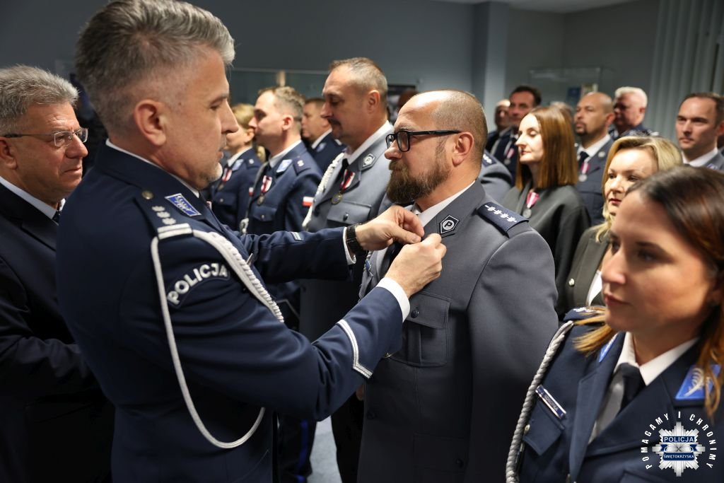 Odznaczenia resortowe „Zasłużony Policjant” zostały wręczone przez Pana Komendanta. Minister wyróżnił 20 funkcjonariuszy jedną złotą, pięcioma srebrnymi i czternastoma brązowymi odznakami.
