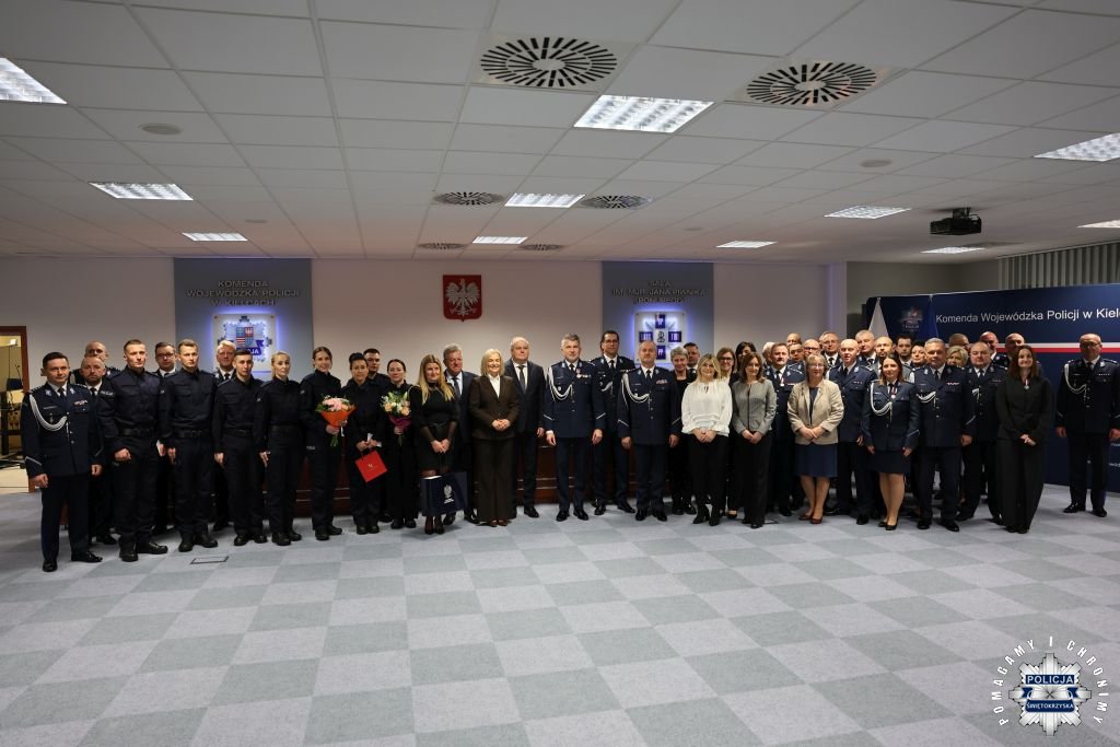 W tym roku Policja uroczyście obchodzi 100-lecie obecności kobiet w swoich szeregach. W związku z tym, 8 pań, których zaangażowanie i codzienna praca stanowią nieocenione wsparcie otrzymało nagrody ufundowane przez Wojewodę Świętokrzyskiego i Panią Marszałek Województwa Świętokrzyskiego.