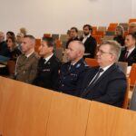 Starosta Tomasz Pleban mówił o roli samorządu powiatowego w systemie bezpieczeństwa państwa wobec współczesnych zagrożeń zewnętrznych. Wymieniał kluczowe obszary odpowiedzialności oraz realizowane przez powiat zadania w obszarze bezpieczeństwa poprzez trzy główne filary: Zarządzanie Kryzysowe i Obronę Cywilną, bezpieczeństwo zdrowotne i socjalne oraz przeciwdziałanie zagrożeniom hybrydowym. Powiat odpowiada za planowanie i koordynację działań w sytuacjach kryzysowych. Starosta jako przewodniczący Powiatowego Zespołu Zarządzania Kryzysowego koordynuje działania służb, a także organizuje szkolenia i ćwiczenia, zatwierdza Plany Zarządzania Kryzysowego. Rolą powiatu jest m.in. koordynacja służb medycznych, zabezpieczenie socjalne. Ponadto powiat jest także aktywnym podmiotem w walce z dezinformacją, a jego działania polegają na szybkiej komunikacji z mieszkańcami i prostowaniu fałszywych informacji. Powiat odpowiada również za cybernetyczną odporność jednostek na zagrożenia, wdrażając systemy bezpieczeństwa, szkoląc pracowników.
