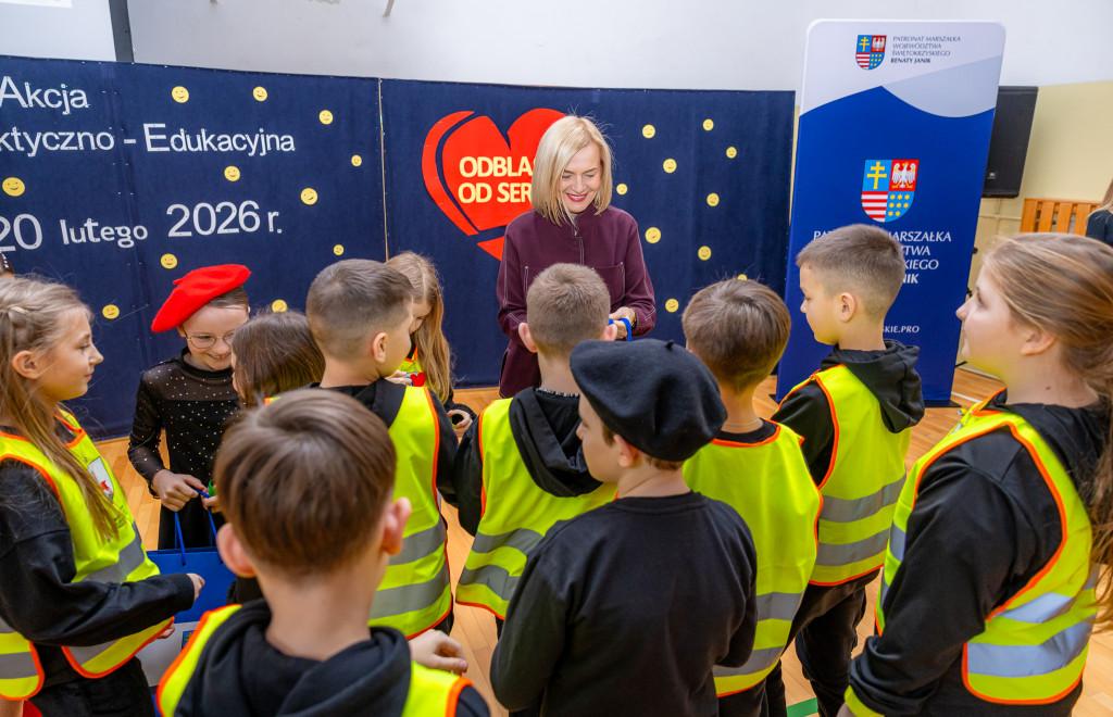Na zaproszenie społeczności Szkoły Podstawowej w Nowej Słupi, marszałek Renata Janik wzięła udział w wydarzeniu profilaktyczno-edukacyjnym „Odblask od serca”, nad którym objęła honorowy patronat. Inicjatywa ta połączyła troskę o bezpieczeństwo z budowaniem więzi międzypokoleniowych, gromadząc licznie przybyłych seniorów oraz młodzież. Głównym punktem programu było wręczenie elementów odblaskowych mających realny wpływ na widoczność pieszych po zmroku. Akcja zorganizowana przez szkołę była nie tylko ważnym krokiem w stronę poprawy bezpieczeństwa pieszych, ale również wyrazem empatii i solidarności między mieszkańcami gminy.
