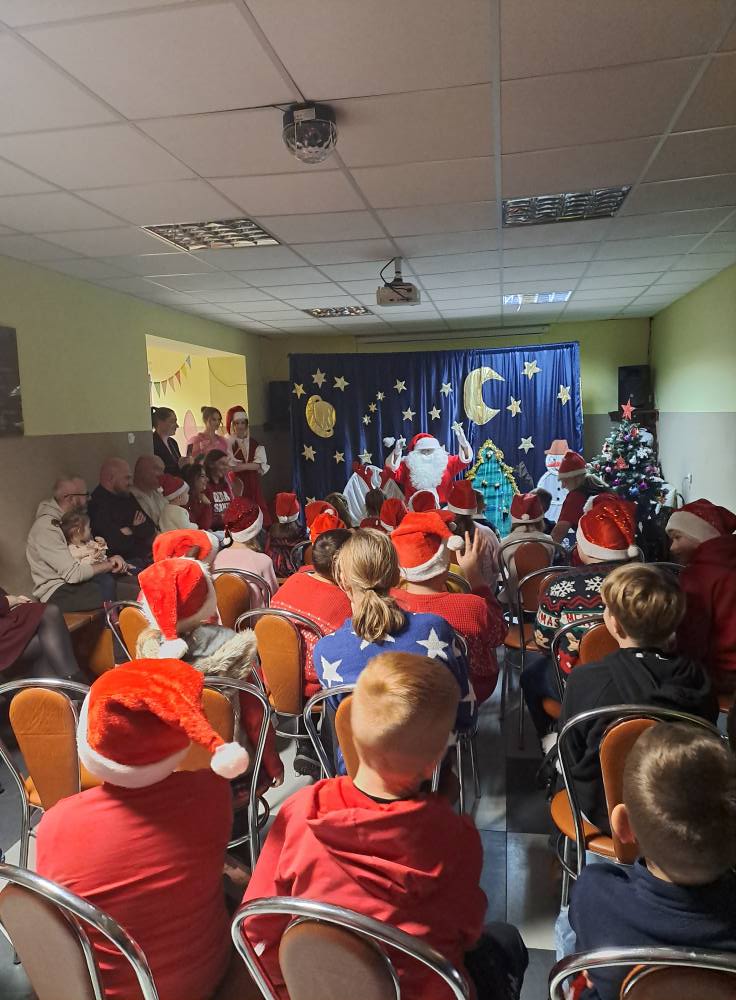 Nie zabrakło również poczęstunku oraz wspólnej zabawy przy świątecznych piosenkach. Spotkanie było doskonałą okazją do integracji lokalnej społeczności i wprowadzenia najmłodszych w magiczny, przedświąteczny nastrój.