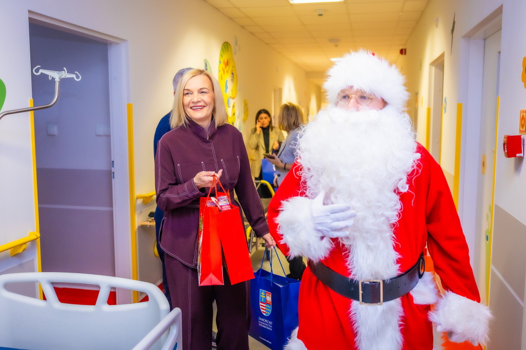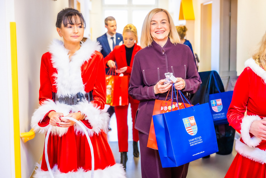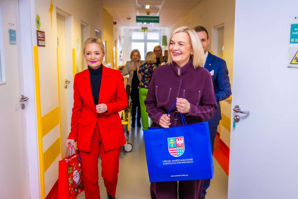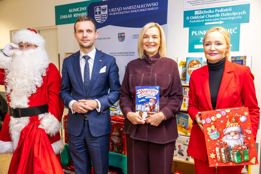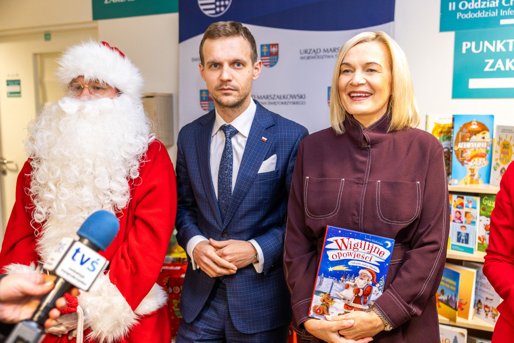W Świętokrzyskim Centrum Pediatrii w Kielcach zapanowała dziś wyjątkowa, świąteczna atmosfera. Na wszystkich Oddziałach szpitalika zawitał Mikołaj, a wraz z nim marszałek Renata Janik oraz dyrektor Wojewódzkiej Biblioteki Publicznej Agnieszka Kuś, niosąc najmłodszym pacjentom prezenty pełne ciepła: książki oraz pluszowe zabawki, które od razu wywoływały uśmiechy na dziecięcych twarzach. Odwiedzając kolejne oddziały „Szpitalika Dziecięcego”, panie rozmawiały z dziećmi, słuchały ich opowieści, dodawały otuchy i wręczały upominki – takie, które choć na chwilę pozwalają oderwać się od myśli o chorobie i zanurzyć w świat zabawy oraz wyobraźni.