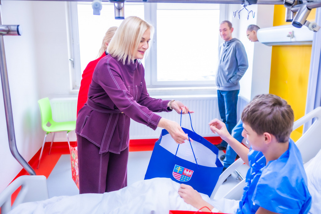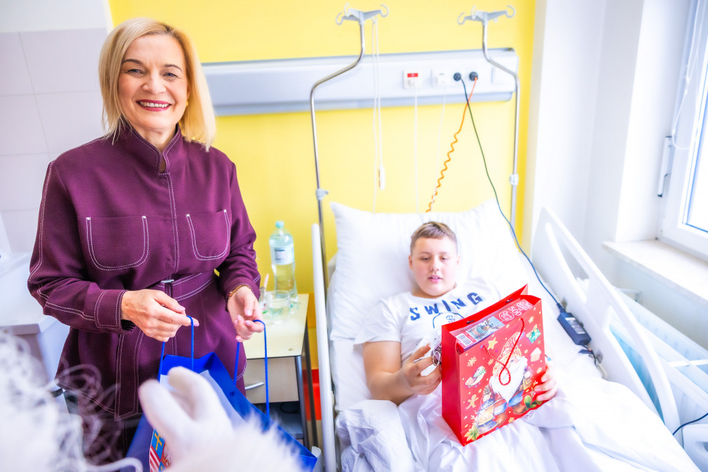 W Świętokrzyskim Centrum Pediatrii w Kielcach zapanowała atmosfera pełna ciepła i mikołajkowej magii. Najmłodsi pacjenci, przebywający na oddziałach Wojewódzkiego Szpitala Zespolonego, mieli okazję oderwać się od szpitalnej codzienności dzięki wyjątkowej wizycie. Marszałek Renata Janik, wraz z dyrektor Wojewódzkiej Biblioteki Publicznej w Kielcach Agnieszką Kuś oraz dyrektorem szpitala Marcinem Martyniakiem, odwiedziła dzieci, niosąc ze sobą kosze pełne prezentów i radości.