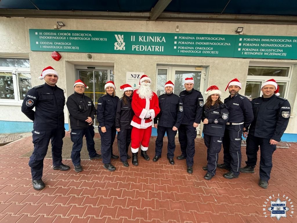 Od jedenastu lat rokrocznie w okresie imienin Mikołaja, funkcjonariusze z Komendy Miejskiej Policji w Kielcach wykonują stałe, bardzo ważne zadanie. Oprócz stania na straży porządku, zawsze w okolicach 6 grudnia policjanci odwiedzają dzieci, przebywające na oddziałach Świętokrzyskiego Centrum Onkologii w Kielcach. Przygotowania do tego wydarzenia trwały od wielu tygodni. Mundurowi, wsparci przez sponsorów, ludzi o wielkim sercu przygotowali podarki, które zapakowane z najwyższą starannością  w miniony piątek zostały przekazane przez Świętego Mikołaja dzieciom znajdującym się na oddziałach onkologicznych.