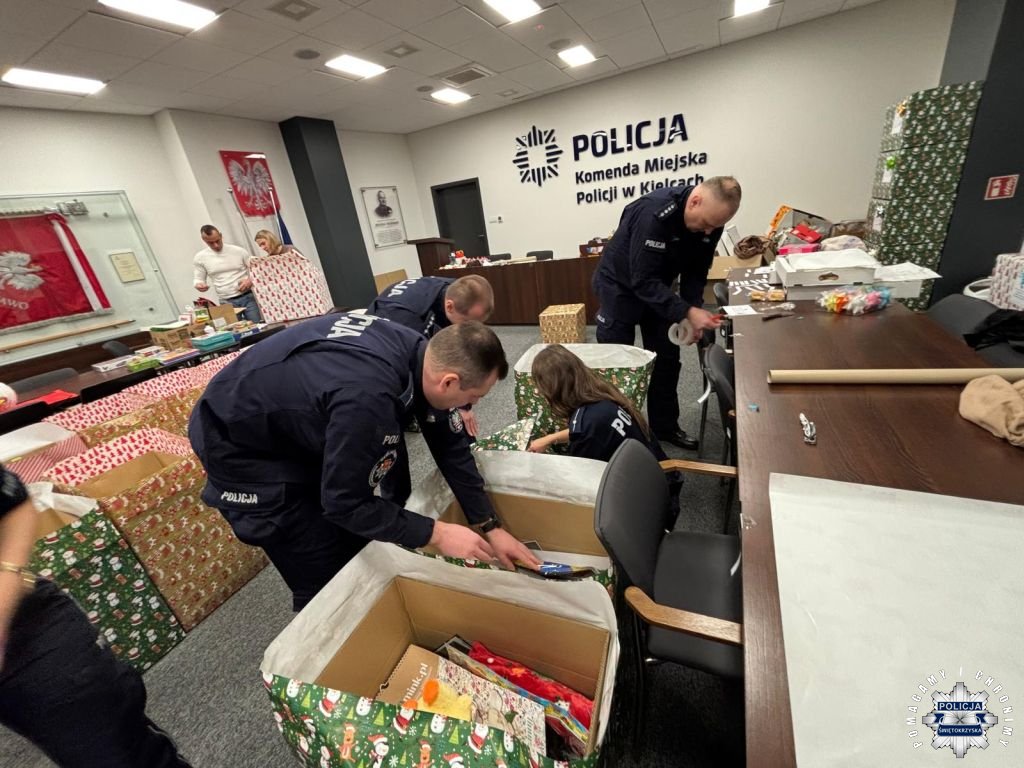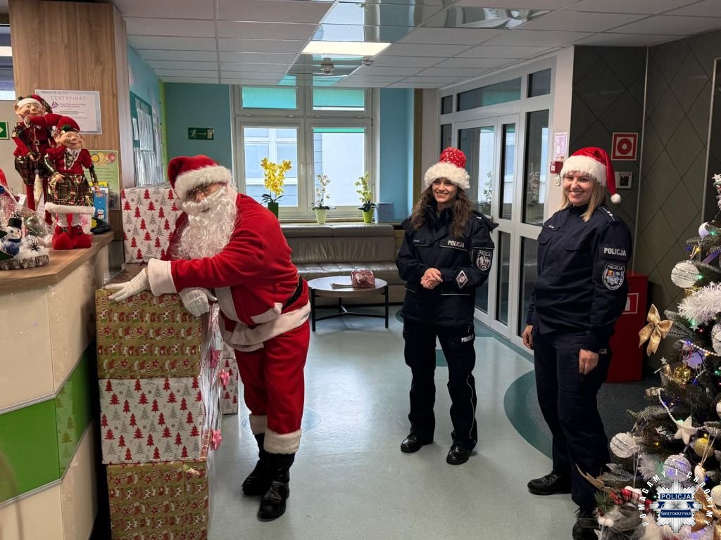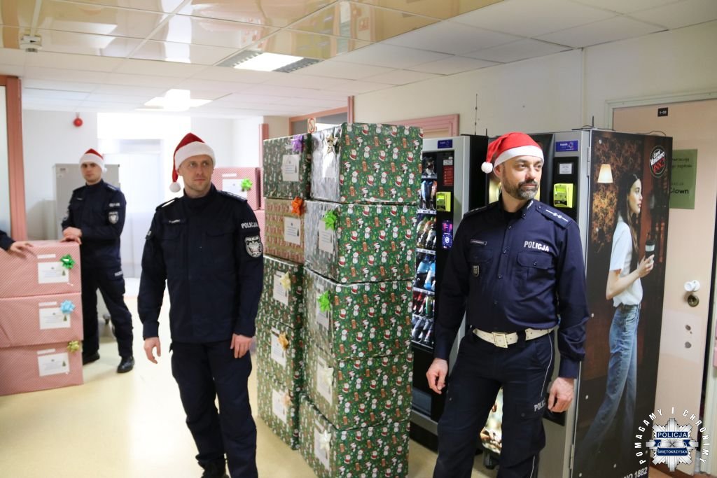 Od jedenastu lat rokrocznie w okresie imienin Mikołaja, funkcjonariusze z Komendy Miejskiej Policji w Kielcach wykonują stałe, bardzo ważne zadanie. Oprócz stania na straży porządku, zawsze w okolicach 6 grudnia policjanci odwiedzają dzieci, przebywające na oddziałach Świętokrzyskiego Centrum Onkologii w Kielcach. Przygotowania do tego wydarzenia trwały od wielu tygodni. Mundurowi, wsparci przez sponsorów, ludzi o wielkim sercu przygotowali podarki, które zapakowane z najwyższą starannością w miniony piątek zostały przekazane przez Świętego Mikołaja dzieciom znajdującym się na oddziałach onkologicznych.