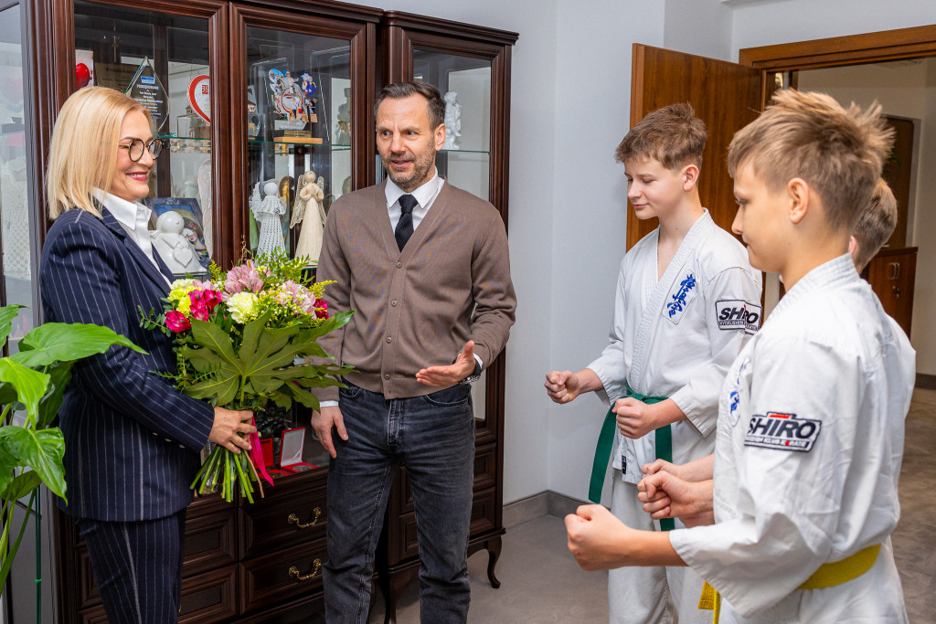 Zawodnicy SHIRO Kyokushin Klub Karate Chęciny Bilcza Kielce: mistrzowie Polski Bartosz Bojek i Adam Bogusławski, oraz Szymon Nartowski – mistrz Polski, wicemistrz Europy wraz z trenerem Alanem Mazurem spotkali się z dzisiaj z marszałek województwa Renatą Janik. Sportowcy podziękowali za pomoc w przygotowaniu i uczestnictwie w sportowych zmaganiach na szczeblu ogólnopolskim i międzynarodowym, pochwalili się również zdobytymi tytułami.
