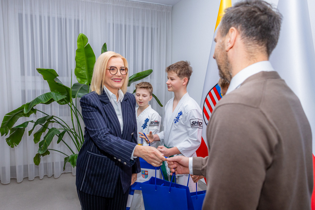 Młodzi sportowcy i ich trener podziękowali marszałek Renacie Janik za pomoc finansową, udzielaną ze środków z budżetu województwa, dzięki którym mogli uczestniczyć w zawodach, pracować nad kondycją w trakcie obozu wakacyjnego, bawić się świetnie m.in. na zawodach mikołajkowych. Marszałek Renata Janik gratulowała wszystkim osiągniętych sukcesów, podziękowała za wspaniałe reprezentowanie województwa na arenie ogólnopolskiej i międzynarodowej. Życzyła realizacji wspaniałych sportowych planów w 2026 roku.