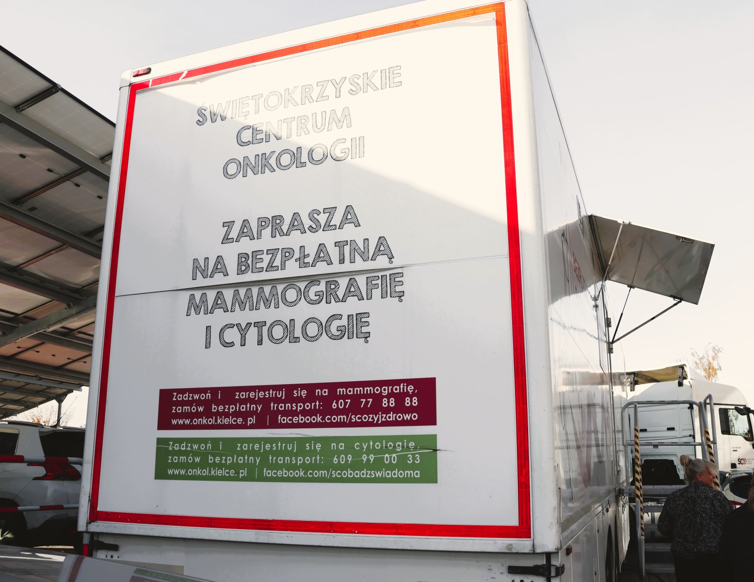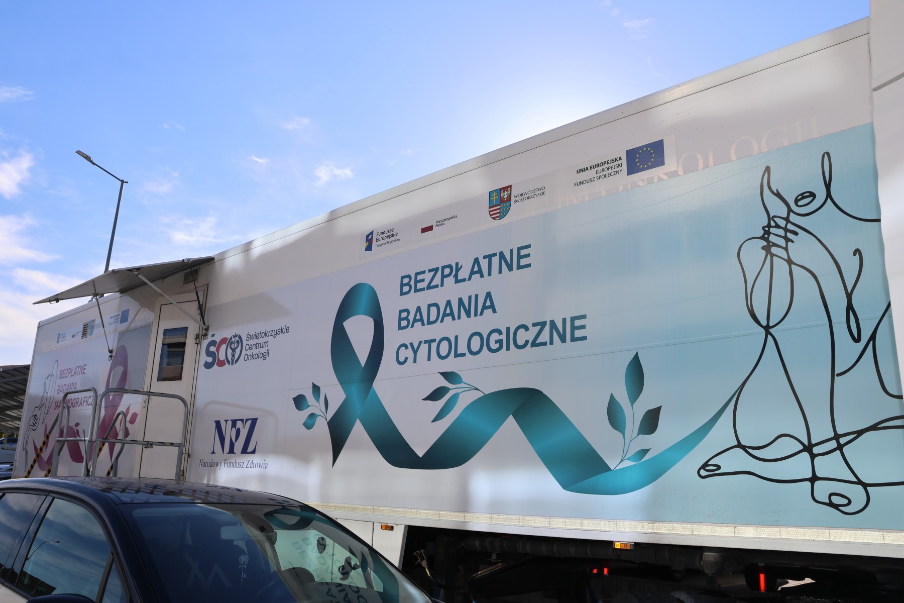 Cytomammobus Świętokrzyskiego Centrum Onkologii stacjonuje dziś na parkingu Starostwa Powiatowego w Kielcach. Z bezpłatnej mammografii i cytologii, panie mogą skorzystać do godziny 16:00. Na badania zgłaszają się pracownice starostwa, ale również kobiety, które przyjechał do starostwa specjalnie po to, by odwiedzić cytomammobus.