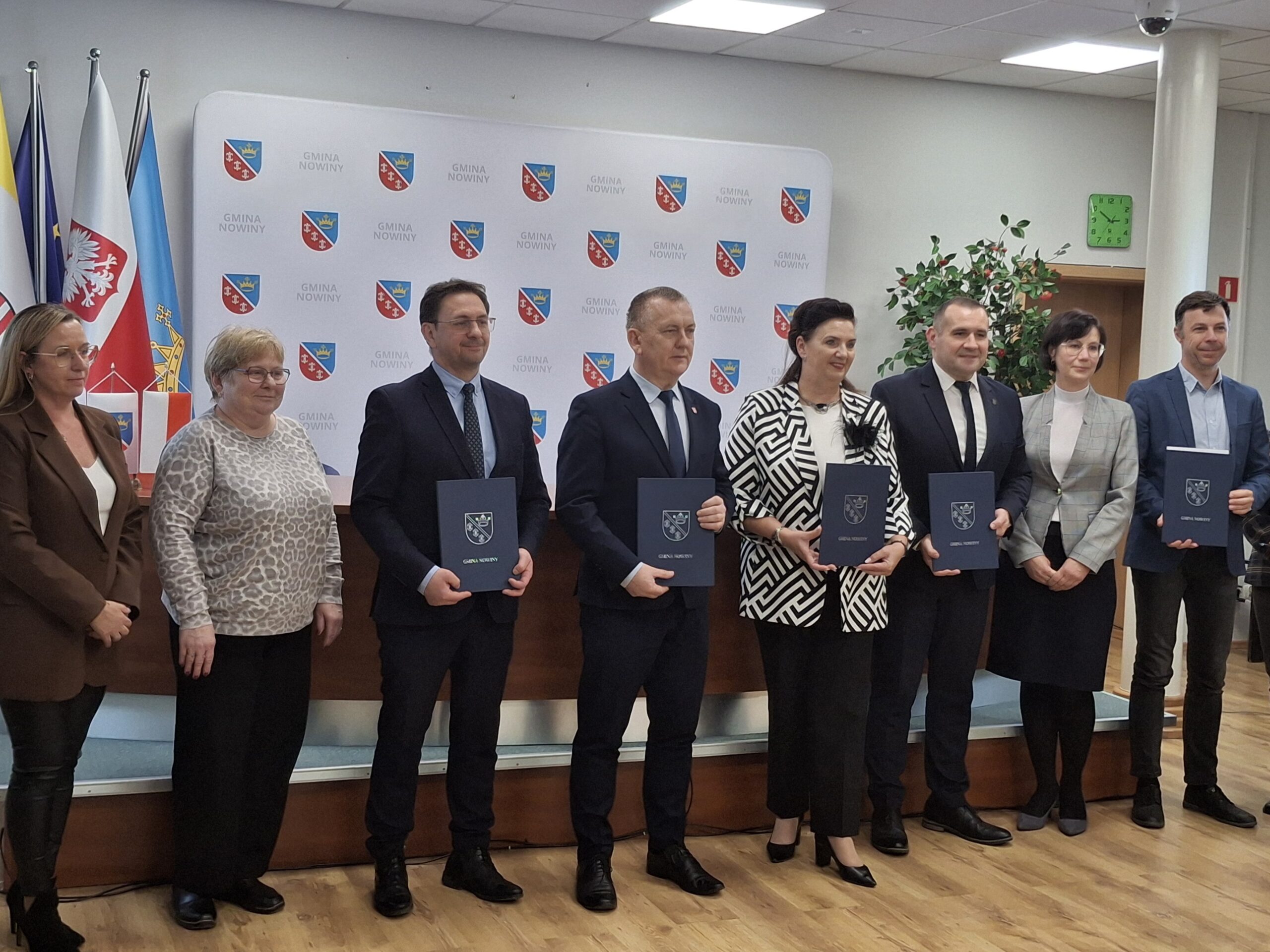Umowę partnerską na realizację projektu „Wykorzystanie zasobów dziedzictwa przyrodniczo–kulturowego na obszarze Geoparku Świętokrzyskiego dla wzmocnienia marki terytorialnej Światowego Geoparku UNESCO” podpisali: Burmistrz Miasta i Gminy Piekoszów Teresa Jakubowska, Burmistrz Gminy i Miasta Chęciny Robert Jaworski, Zastępca Burmistrza Miasta i Gminy Morawica Marcin Dziewięcki oraz Wójt Gminy Nowiny Łukasz Gryń. Celem przedsięwzięcia jest wzmocnienie marki Geoparku Świętokrzyskiego UNESCO, a także lepsze wykorzystanie jego dziedzictwa geologicznego, przyrodniczego i kulturowego w poszczególnych samorządach. Projekt zakłada realizację zadań w czterech gminach, a pozyskane środki zostaną podzielone pomiędzy samorządy proporcjonalnie do liczby mieszkańców. Liderem partnerstwa została gmina Nowiny.