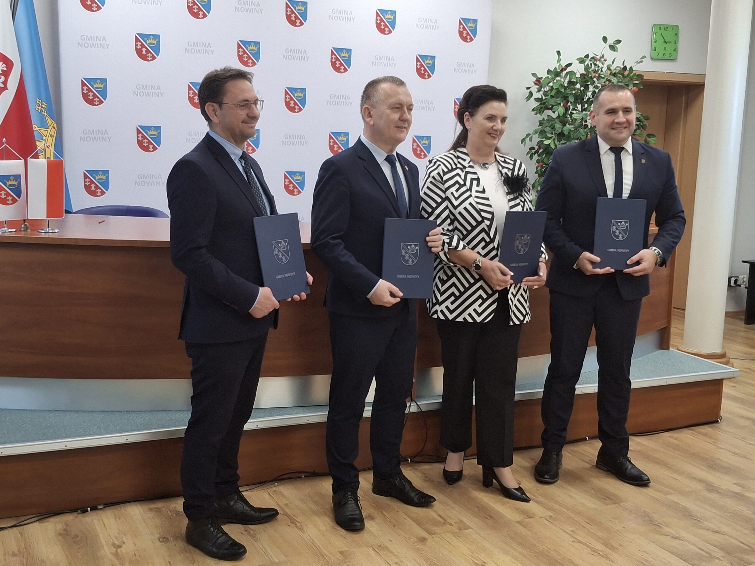 We wtorek, 2 grudnia br. w Urzędzie Gminy Nowiny odbyło się uroczyste podpisanie umowy partnerstwa pomiędzy Chęcinami, Morawicą, Nowinami i Piekoszowem na realizację projektu „Wykorzystanie zasobów dziedzictwa przyrodniczo–kulturowego na obszarze Geoparku Świętokrzyskiego dla wzmocnienia marki terytorialnej Światowego Geoparku UNESCO”. Porozumienie otwiera możliwość wspólnego pozyskania ponad 15 mln zł unijnego dofinansowania. Gmina Morawica planuje przeznaczyć 4,6 mln zł na rozbudowę Centrum Samorządowego o Centrum Tradycji Ziemi Morawickiej.