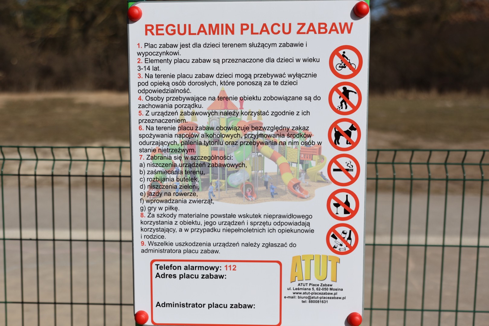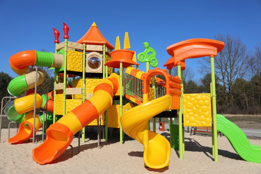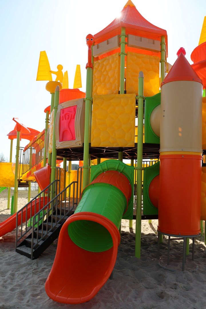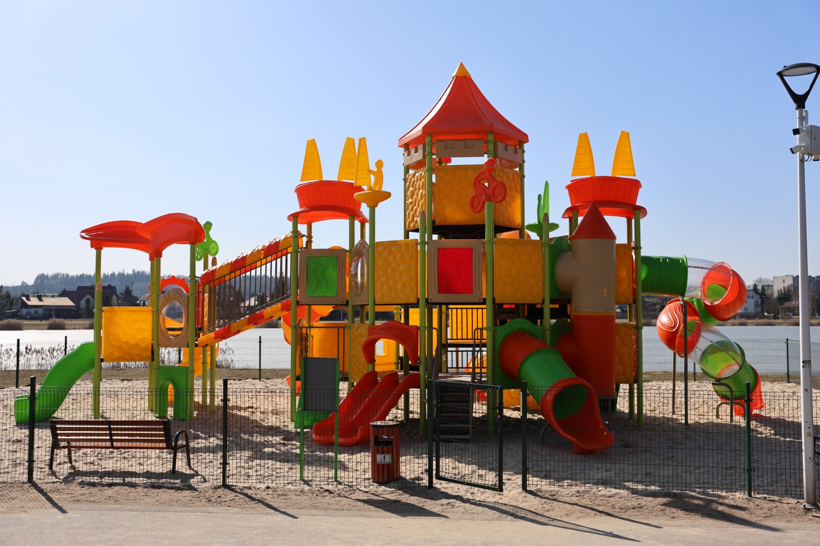 Ponad siedmiometrowy zamek składa się z połączonych ze sobą wież i podestów, kilku zjeżdżalni – zarówno otwartych, jak i rurowych – a także tuneli i mostków. Urządzenie pozwala na jednoczesną zabawę wielu dzieci, wspierając integrację i wspólne spędzanie czasu na świeżym powietrzu. Konstrukcja wykonana jest z trwałych materiałów odpornych na warunki atmosferyczne i została ogrodzona. Nowoczesne urządzenie stanowi dla najmłodszych przestrzeń do ruchu, rozwoju sprawności fizycznej oraz twórczej zabawy na świeżym powietrzu.