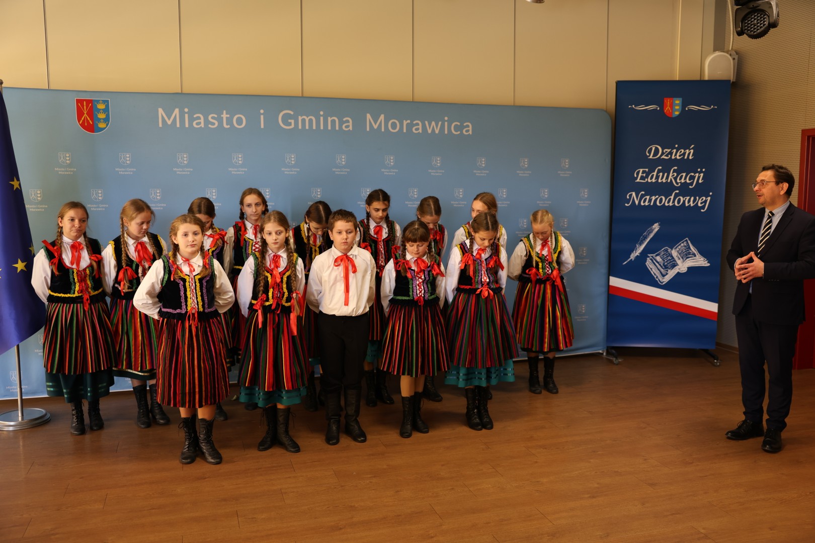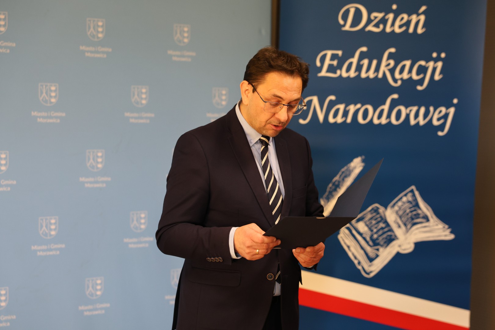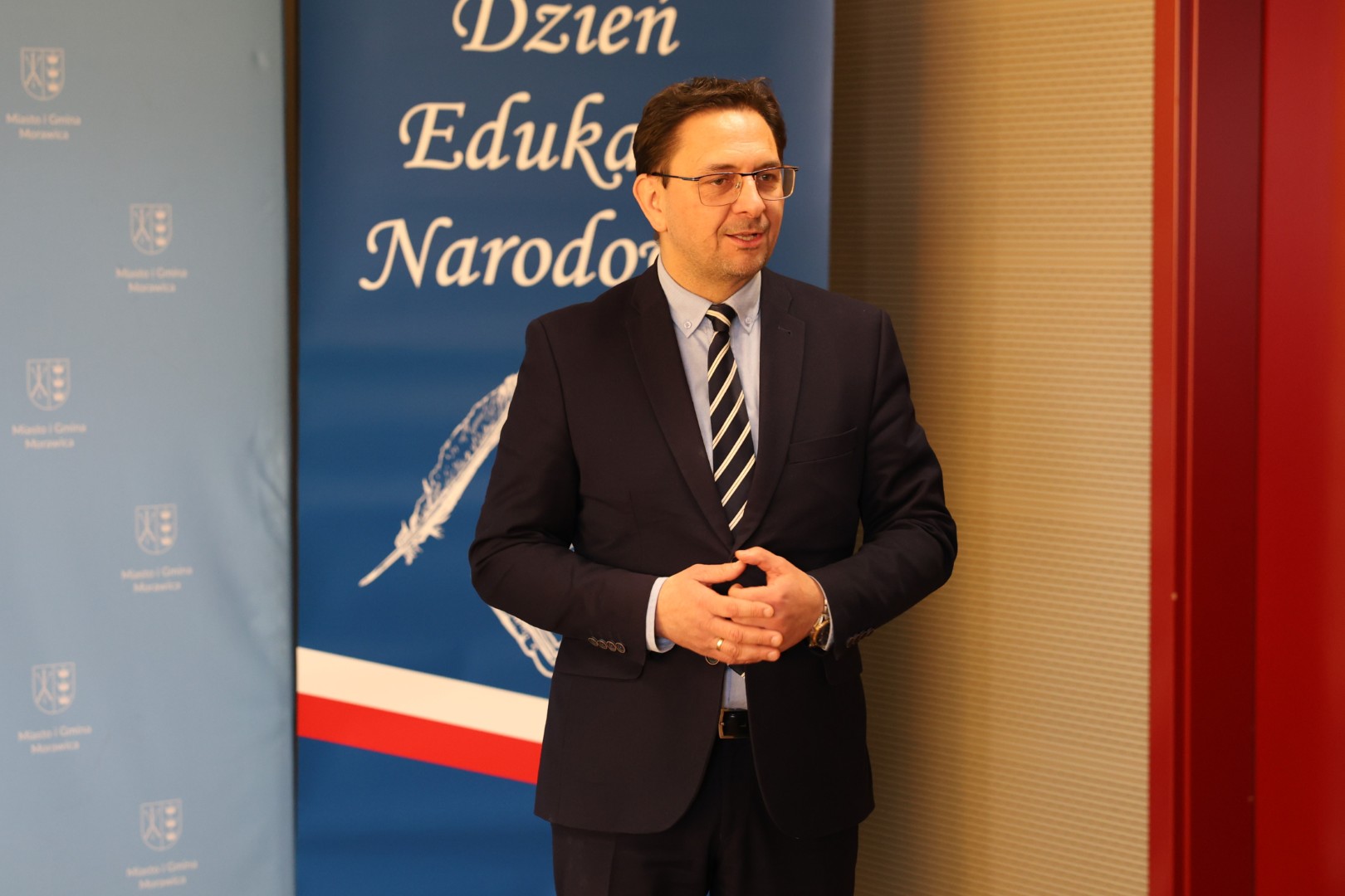 „Dzień Edukacji Narodowej to święto całej społeczności szkolnej — uczniów, nauczycieli, rodziców oraz nas, samorządowców, którzy wspieramy działalność oświatową jako organ prowadzący szkoły. Przy tej okazji chciałbym z całego serca podziękować za Państwa zaangażowanie, pasję i wysiłek wkładany w wychowanie młodego pokolenia. – mówił Zastępca Burmistrza Marcin Dziewięcki. – „To, co dzieje się w szkołach, to nie tylko nauczanie – to przede wszystkim przygotowanie młodych ludzi do dorosłego życia. Marzę o tym, aby każdy młody człowiek, który opuszcza mury naszych szkół, wychodził z nich nie tylko z wiedzą, ale także z mocnym kręgosłupem moralnym, poczuciem odpowiedzialności i wrażliwości na drugiego człowieka. Praca nauczyciela jest nie do przecenienia, za Państwa pracę i profesjonalizm serdecznie dziękuję.” – podsumował Zastępca Burmistrza.