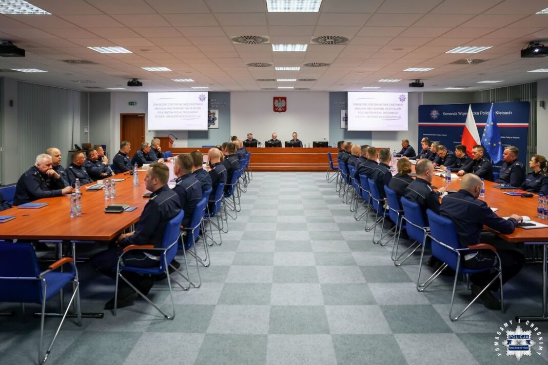 W Sali Narad im. mjr. Jana Piwnika „Ponurego” w Komendzie Wojewódzkiej Policji w Kielcach odbyła się dzisiaj narada kadry kierowniczej Wydziałów Ruchu Drogowego garnizonu świętokrzyskiego, podsumowująca stan bezpieczeństwa na drogach województwa w 2025 roku oraz wyznaczająca priorytety działań na rok 2026.