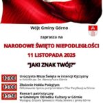 Gmina Górno- już 8 listopada odbędzie się Patriotyczny Rajd Pieszy z okazji Narodowego Święta Niepodległości. Uroczyste obchody rozpocznie 11 listopada o godz.12:00 uroczysta Msza Święta w Intencji Ojczyzny w kościele pw. Św. Wawrzyńca w Górnie. W programie także m.in. Koncert Patriotyczny w sali widowiskowej Gminnego Ośrodka Kultury w Górnie oraz miniatura sceniczna w reżyserii Izabeli Kalety pt. „Jaki znak Twój?” w wykonaniu Teatru Scena Górna.