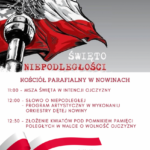 Gmina Nowiny – 11 listopada o godz. 11:00 zosatnie odprawiona Msza Święta w intencji Ojczyzny. O godz. 12:00 zaplanowano program artystyczny „Słowo o Niepodległej” w wykonaniu Orkiestry Dętej z Nowin.