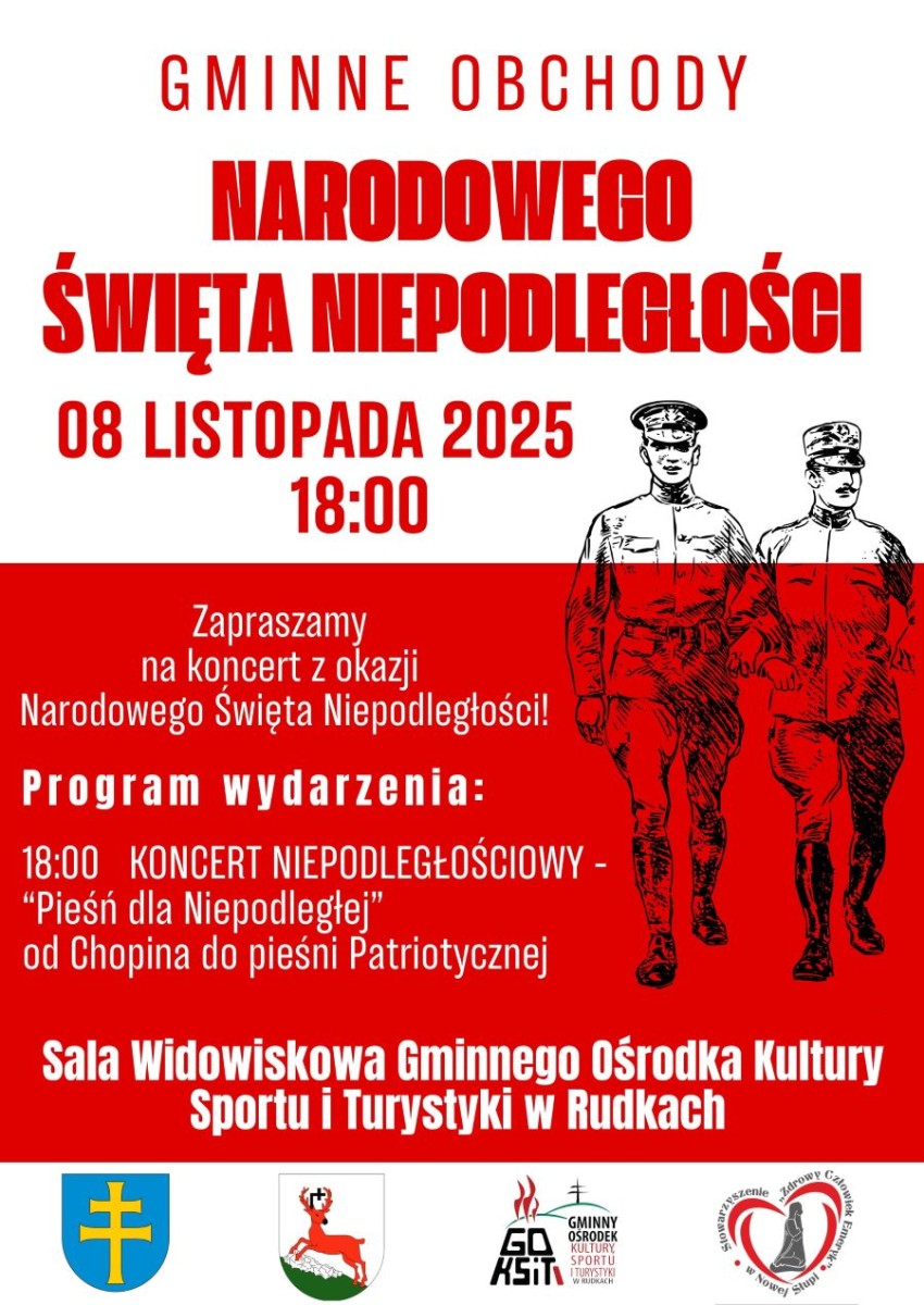 Miasto i Gmina Nowa Słupia – w ramach obchodów 8 listopada o godz. 18:00 odbędzie się koncert niepodległościowy w gminnym ośrodku kultury w Rudkach.