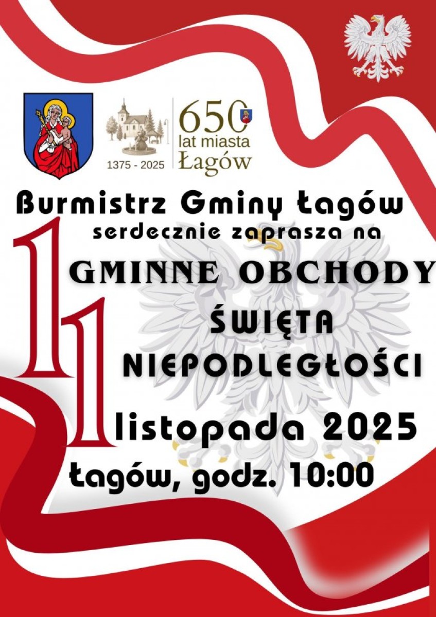 Miasto i Gmina Łagów – uroczystości rozpoczną się 11 listopada Mszą Świętą o godz.10:00. Później odbędą się uroczystości patriotyczne w Rynku. W programie obchodów także występ miejscowej młodzieży, wykład historyka z IPN, koncert pieśni patriotycznych, konkurs wiedzy o historii Łagowa.