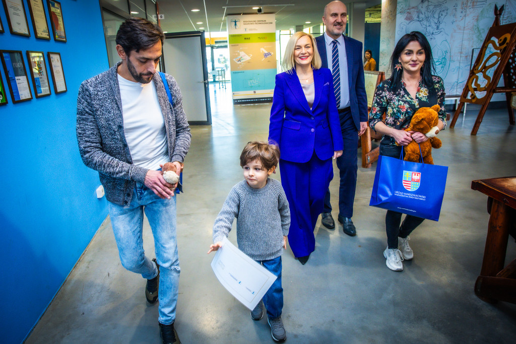 Chłopiec, który w programie bezbłędnie wskazuje nazwy i położenie państw na podstawie ich flag, tym razem miał okazję odkrywać tajniki nauki wspólnie z marszałek Renatą Janik, wicemarszałkiem Grzegorzem Sochą oraz swoimi rodzicami. Spotkanie było okazją nie tylko do gratulacji, ale i do wspólnego celebrowania pasji do nauki, którą Centrum Nauki Leonardo Da Vinci promuje wśród najmłodszych mieszkańców regionu.