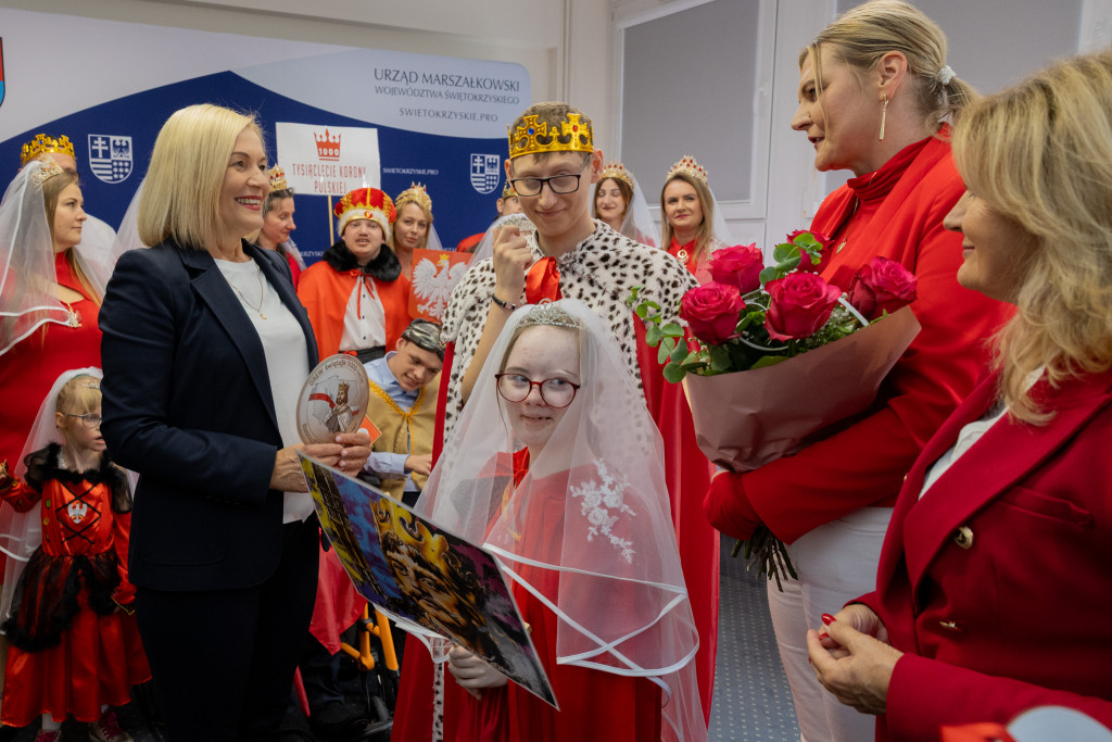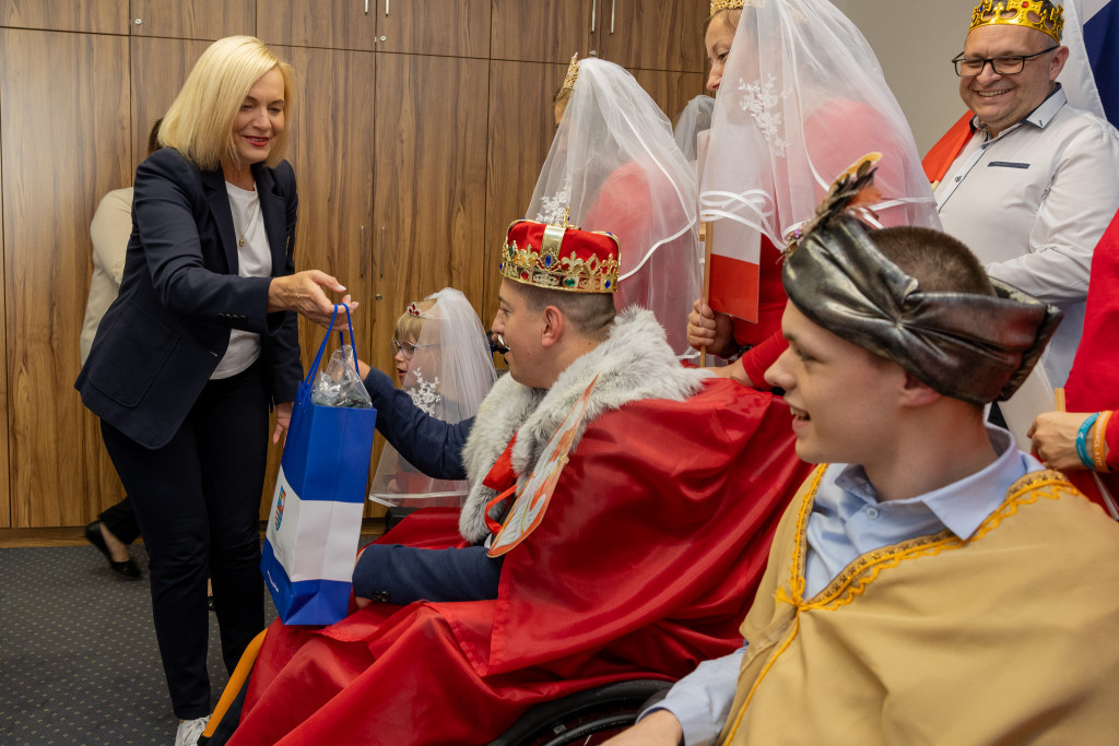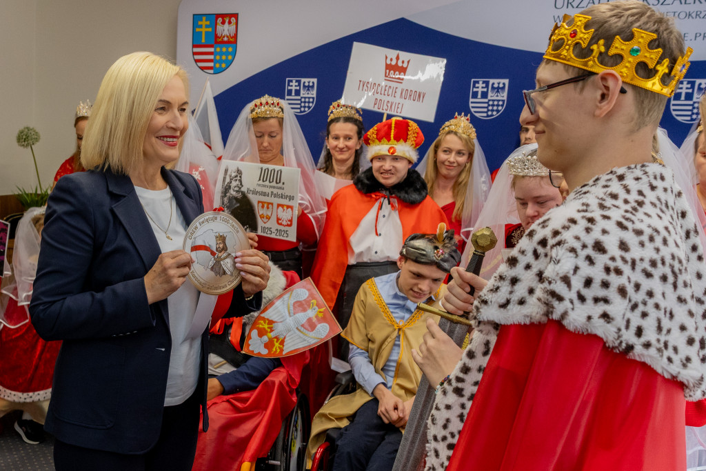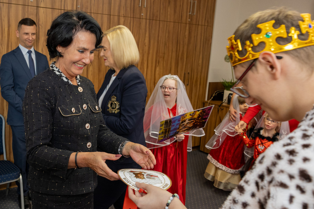 Dzieci i młodzież przygotowali specjalną piosenkę-niespodziankę, którą zaśpiewali dla pani marszałek. Wręczyli również własnoręcznie przygotowany kotylion z wizerunkiem Bolesława Chrobrego, nawiązujący do trwających obchodów 1000-lecia koronacji pierwszego króla Polski. Kotyliony otrzymali też dyrektor ROPS Elżbieta Korus oraz kierownik ROPS Damian Gad.