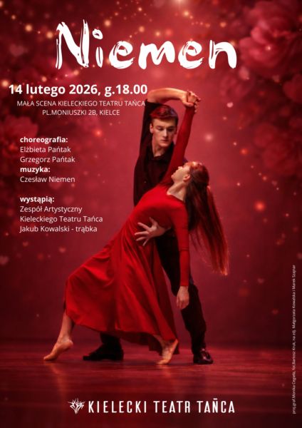 Zaprezentujemy dla Państwa spektakl pt. „Niemen”, w choreografii Elżbiety Pańtak i Grzegorza Pańtaka, gdzie taniec łączy się z utworami Czesława Niemena. To sentymentalna podróż – pełna miłości, tańca i muzyki. Podczas wieczoru wystąpią dla Państwa artyści Kieleckiego Teatru Tańca.