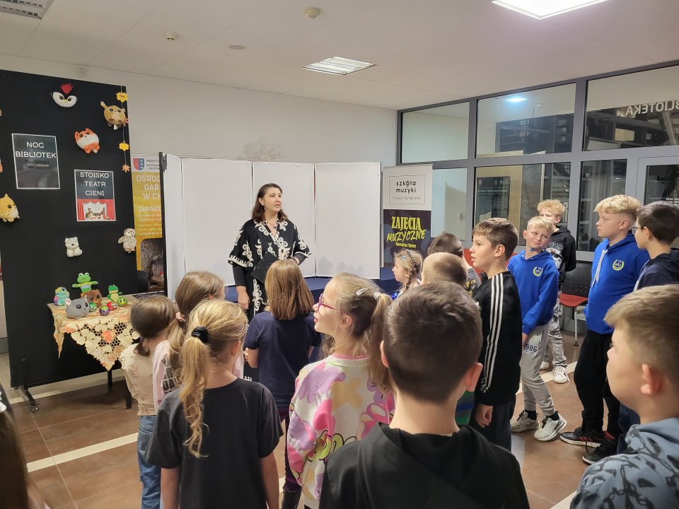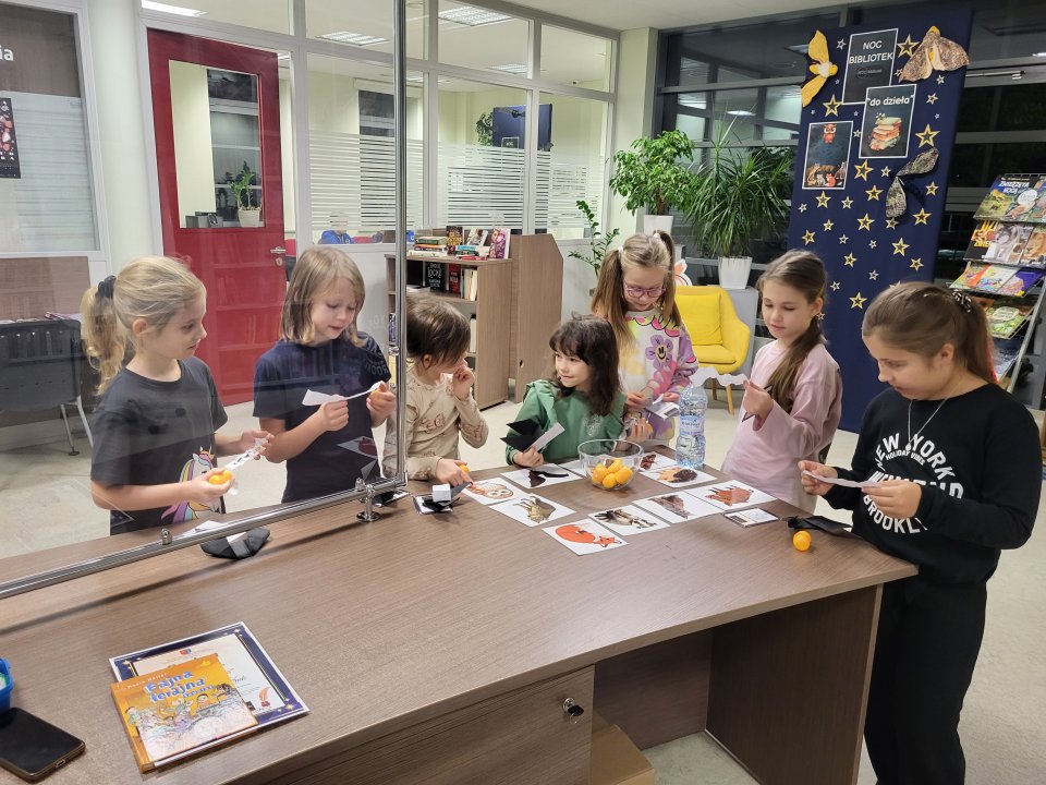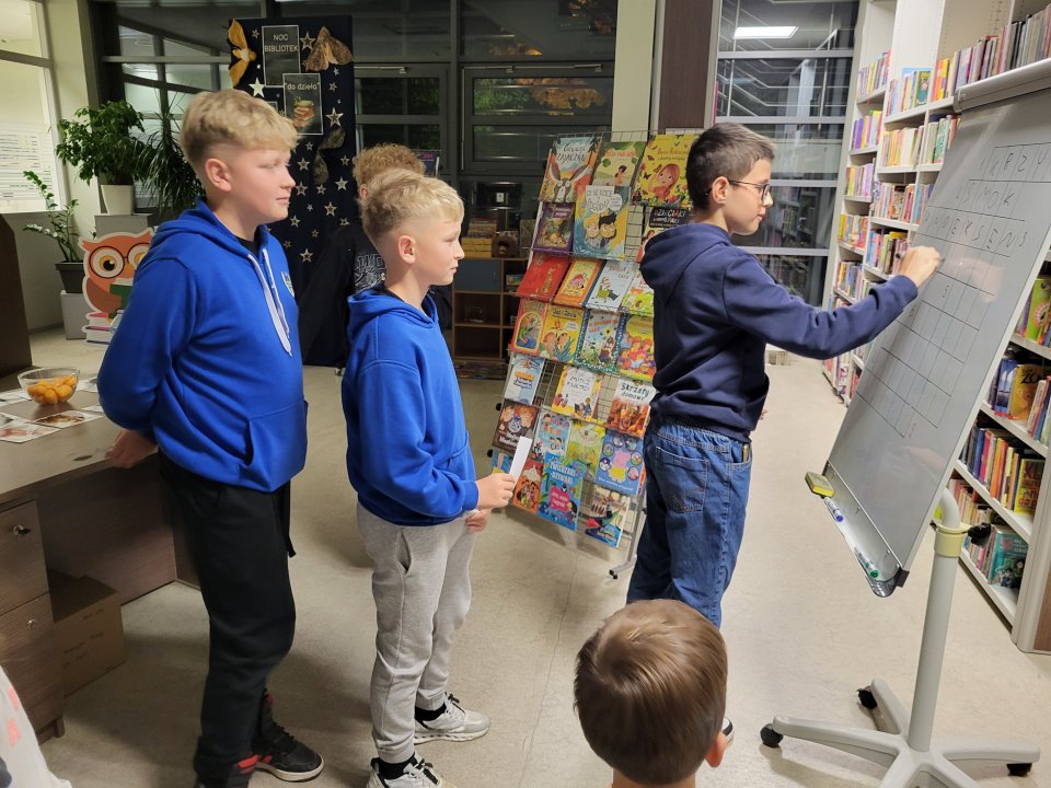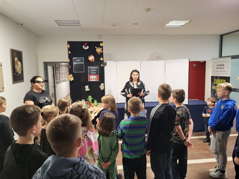 Tego wyjątkowego wieczoru biblioteka zamieniła się w królestwo literackich przygód, w którym piękne dekoracje przy każdym stanowisku zachęcały do odkrywania kolejnych zadań. W powietrzu unosiła się radość, ekscytacja i duch wspólnej zabawy. Każdy uczestnik mógł poczuć, że przenosi się do świata, gdzie książki ożywają, a wyobraźnia nie zna granic.