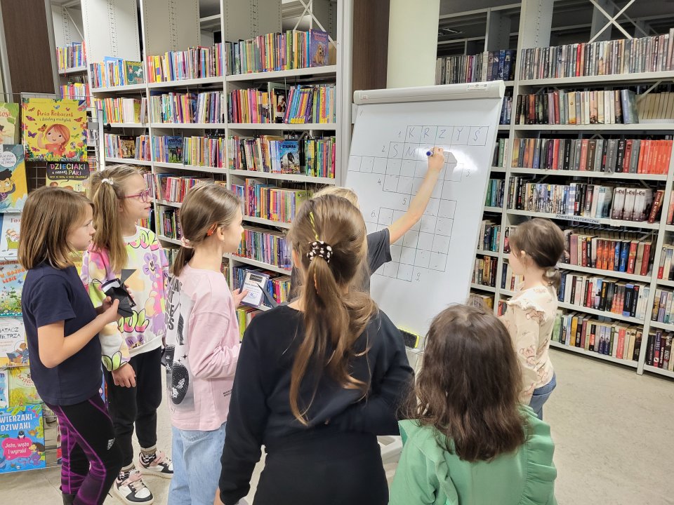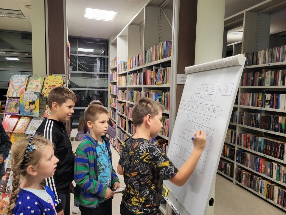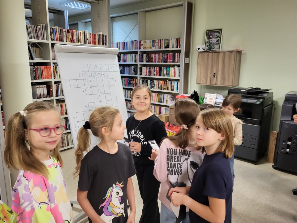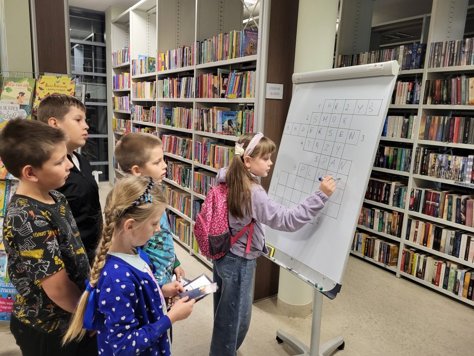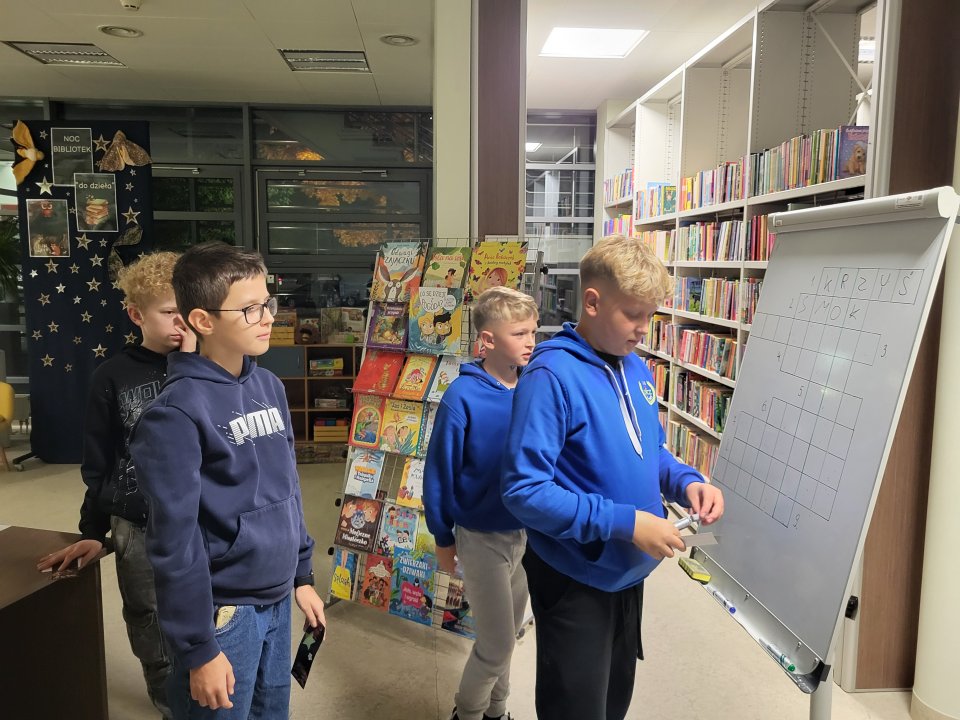 Tego wyjątkowego wieczoru biblioteka zamieniła się w królestwo literackich przygód, w którym piękne dekoracje przy każdym stanowisku zachęcały do odkrywania kolejnych zadań. W powietrzu unosiła się radość, ekscytacja i duch wspólnej zabawy. Każdy uczestnik mógł poczuć, że przenosi się do świata, gdzie książki ożywają, a wyobraźnia nie zna granic.