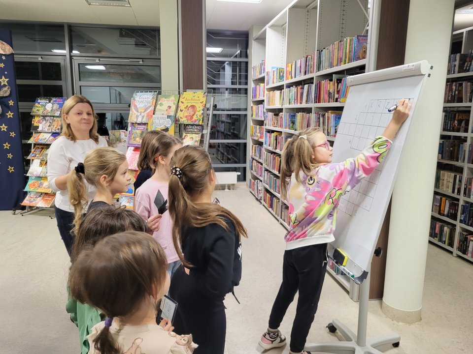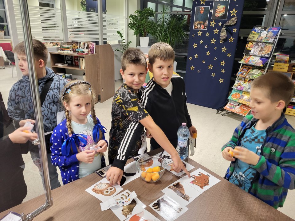 Nie zabrakło również ekscytujących wyzwań – jednym z najbardziej emocjonujących momentów było poszukiwanie zakładek przy zgaszonym świetle, podczas którego fluorescencyjne gwiazdki prowadziły uczestników do ukrytych literackich skarbów. Radości i śmiechu było co niemiara, a każdy mógł poczuć się jak bohater własnej książki przygodowej.