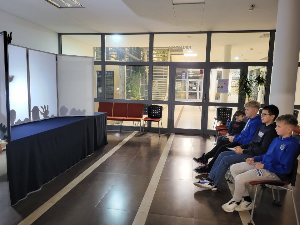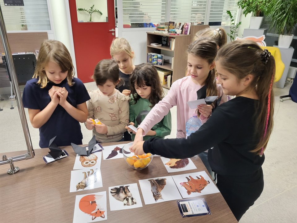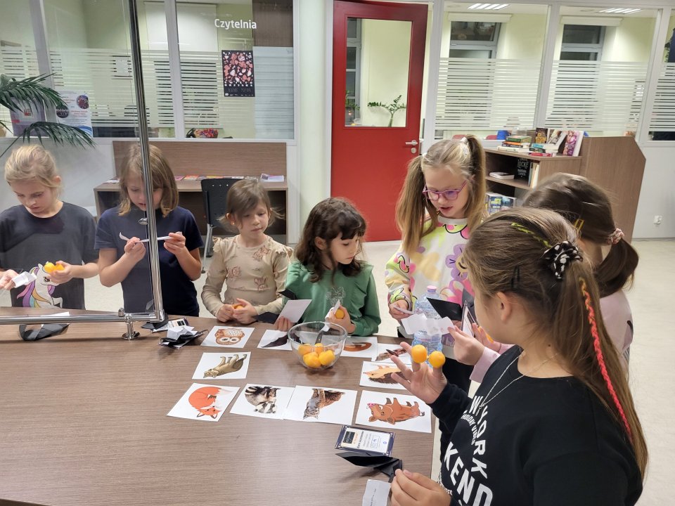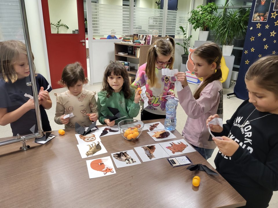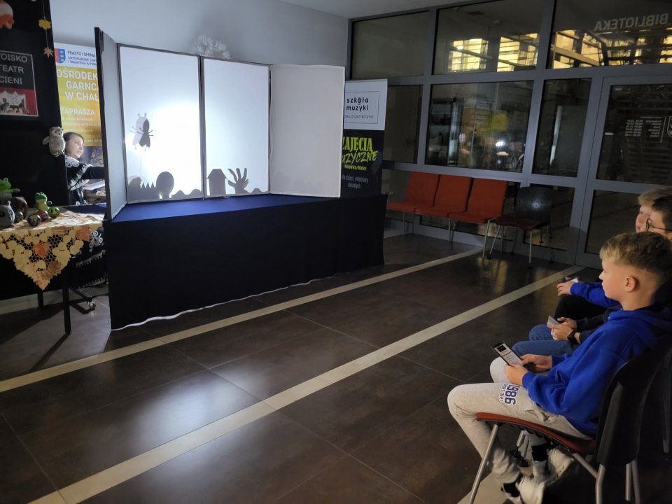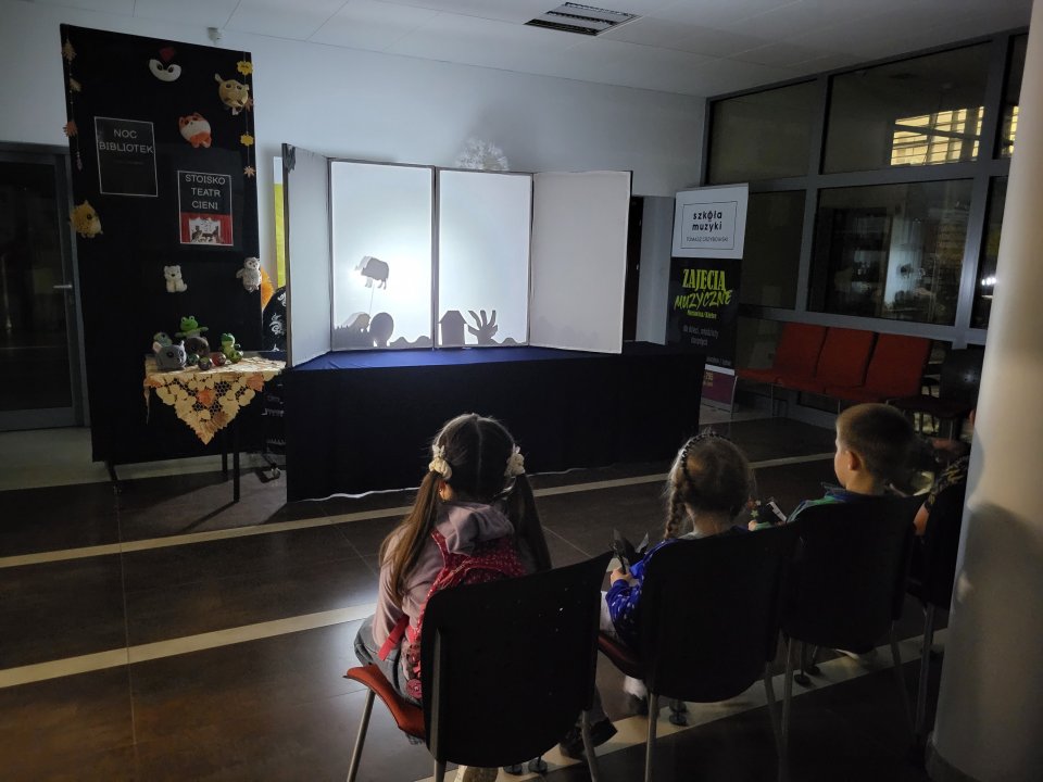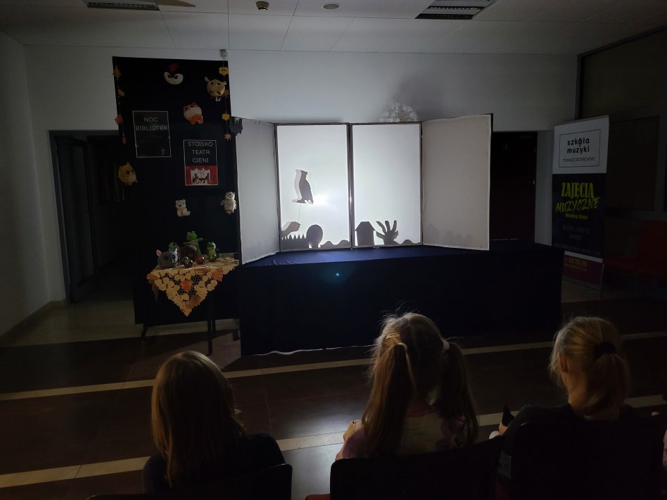 Teatr cieni – za zasłoną, na specjalnie przygotowanej scenie i przy delikatnym podświetleniu, dzieci oglądały niezwykłe widowisko o nocnych zwierzętach. Słuchały ciekawostek o ich zwyczajach i próbowały odgadnąć, o jakim bohaterze mowa.