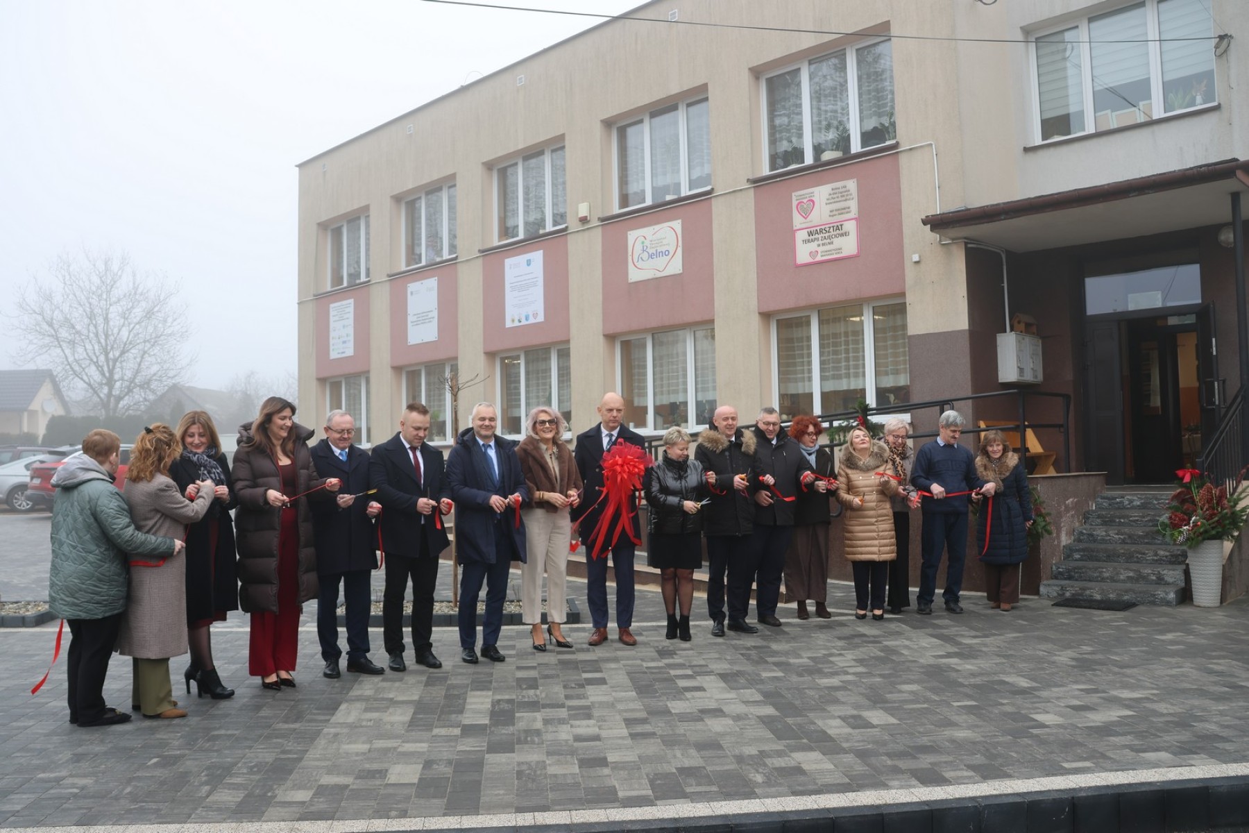W przedświątecznej atmosferze oficjalnie otwarto wygodną i przyjazną dla osób niepełnosprawnych przestrzeń wokół siedziby WTZ w Belnie.