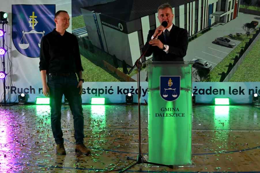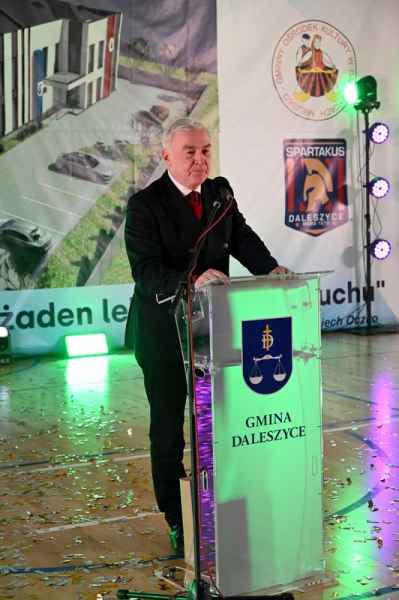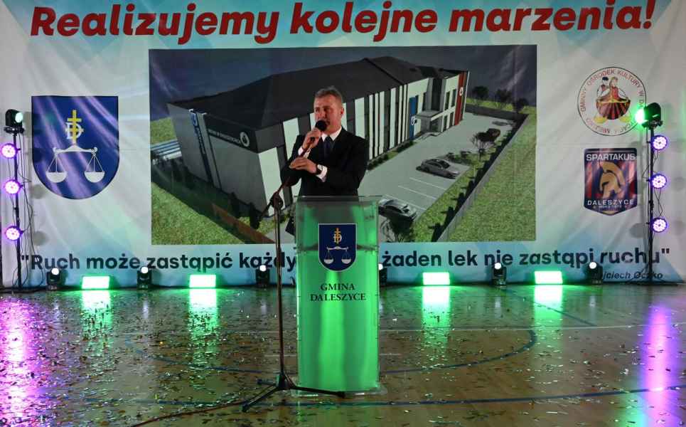 To obiekt, który łączy pełnowymiarową halę sportową z czterokondygnacyjną częścią przeznaczoną na działalność sportową, muzyczną, taneczną i społeczną. To spełnienie marzeń wielu pokoleń mieszkańców. Dziś otwieramy budynek, który będzie służyć dzieciom, młodzieży, sportowcom, artystom i wszystkim mieszkańcom naszej gminy. To miejsce integracji, rozwoju pasji i budowania sportowej siły. Jestem przekonany, że nowy ośrodek stanie się prawdziwym sercem życia kulturalnego i sportowego Daleszyc, a także naszą wizytówką na długie lata – podkreślił burmistrz Dariusz Meresiński.