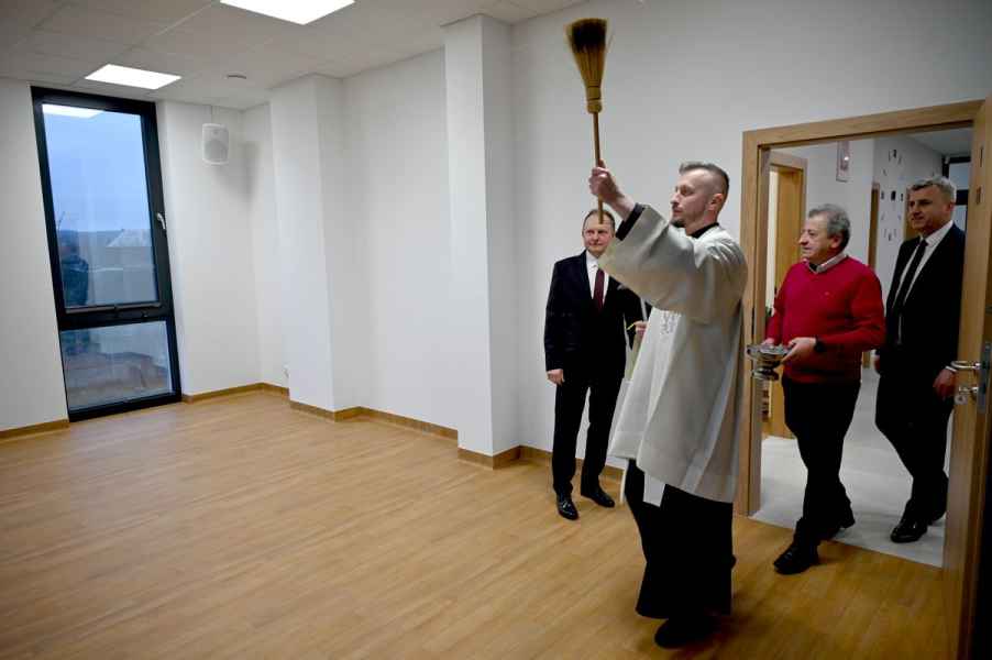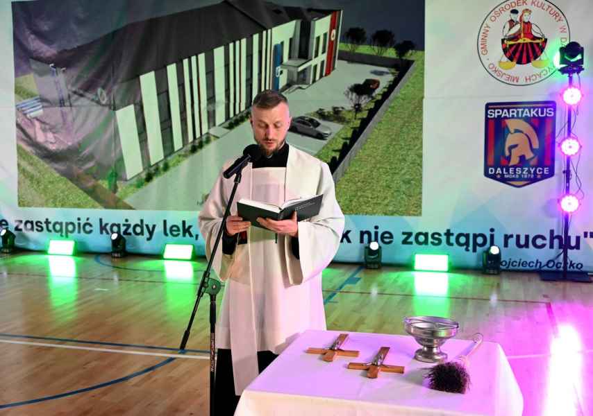 w pomieszczeniach obiektu. Poświęcenia dokonał ks. Bartosz Wąsat wikariusz parafii pod wezwaniem świętego Michała Archanioła w Daleszycach, obecni na sali byli również proboszcz