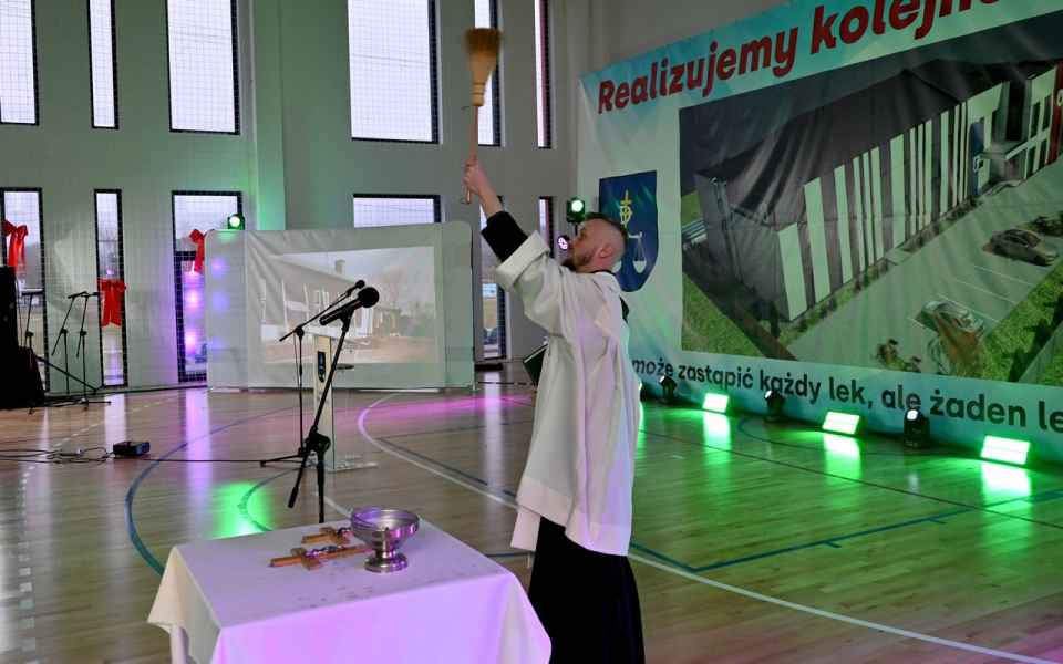 Wydarzenie rozpoczęło się od uroczystego poświęcenia hali i powieszenia krzyży
