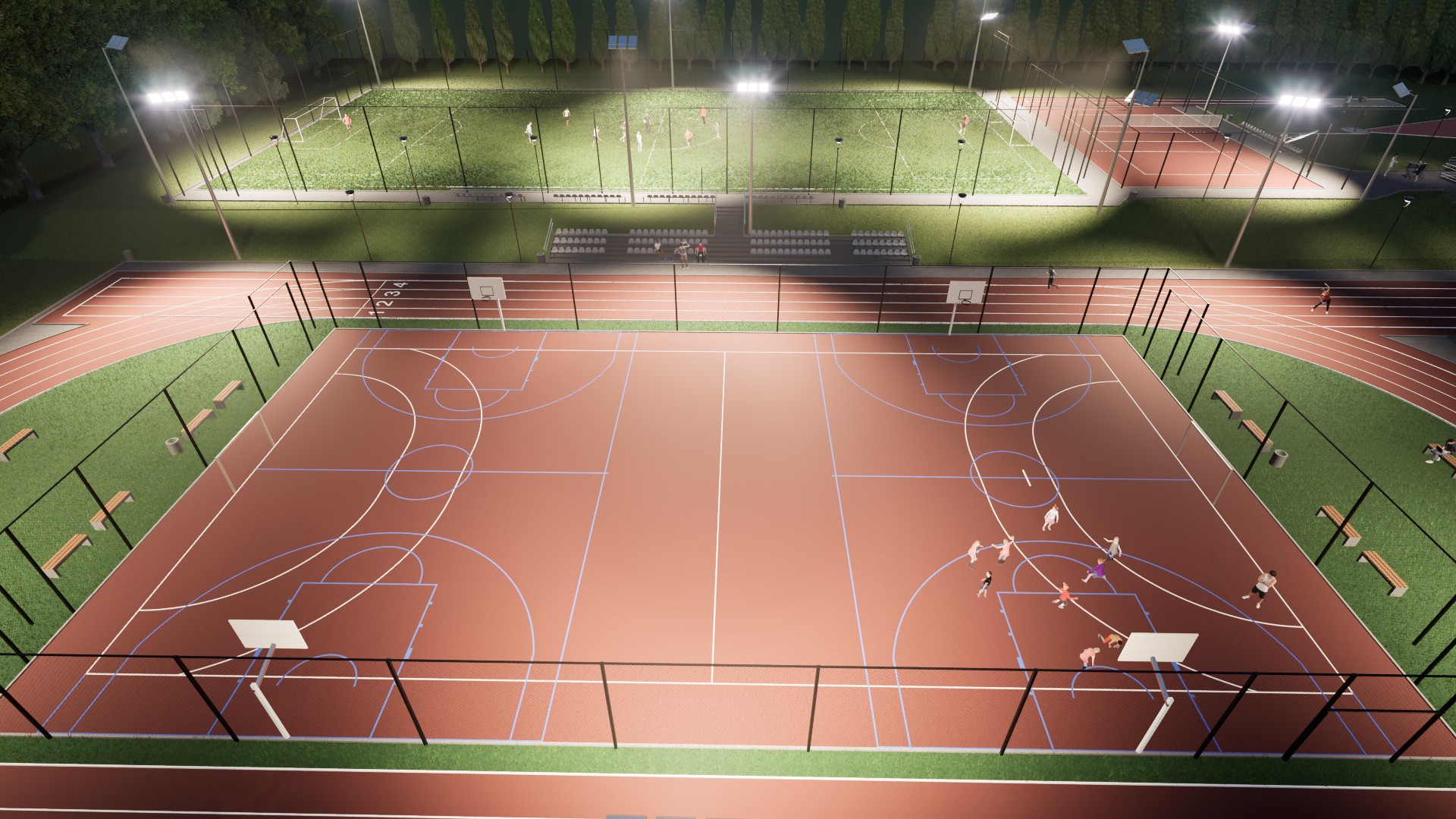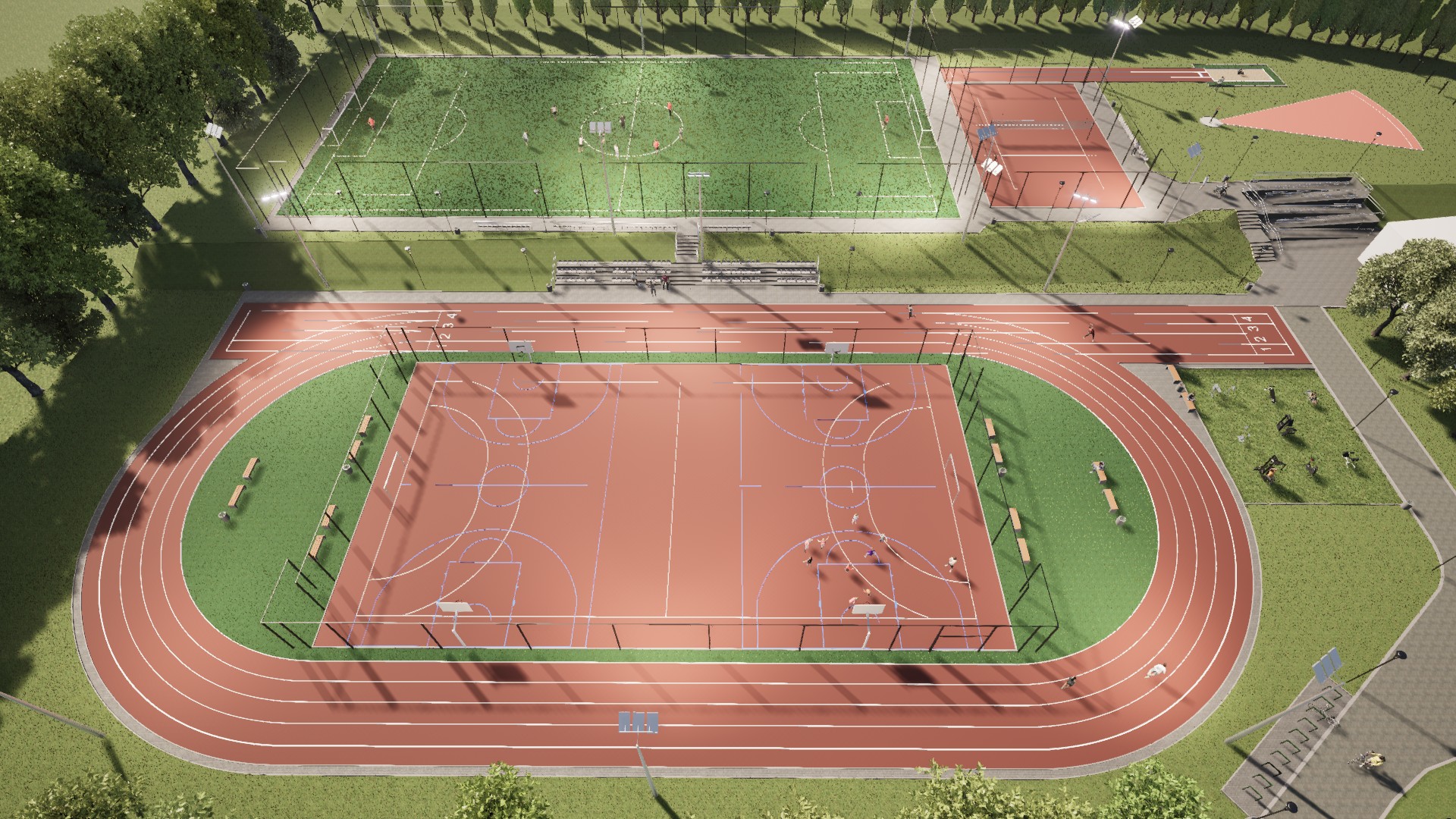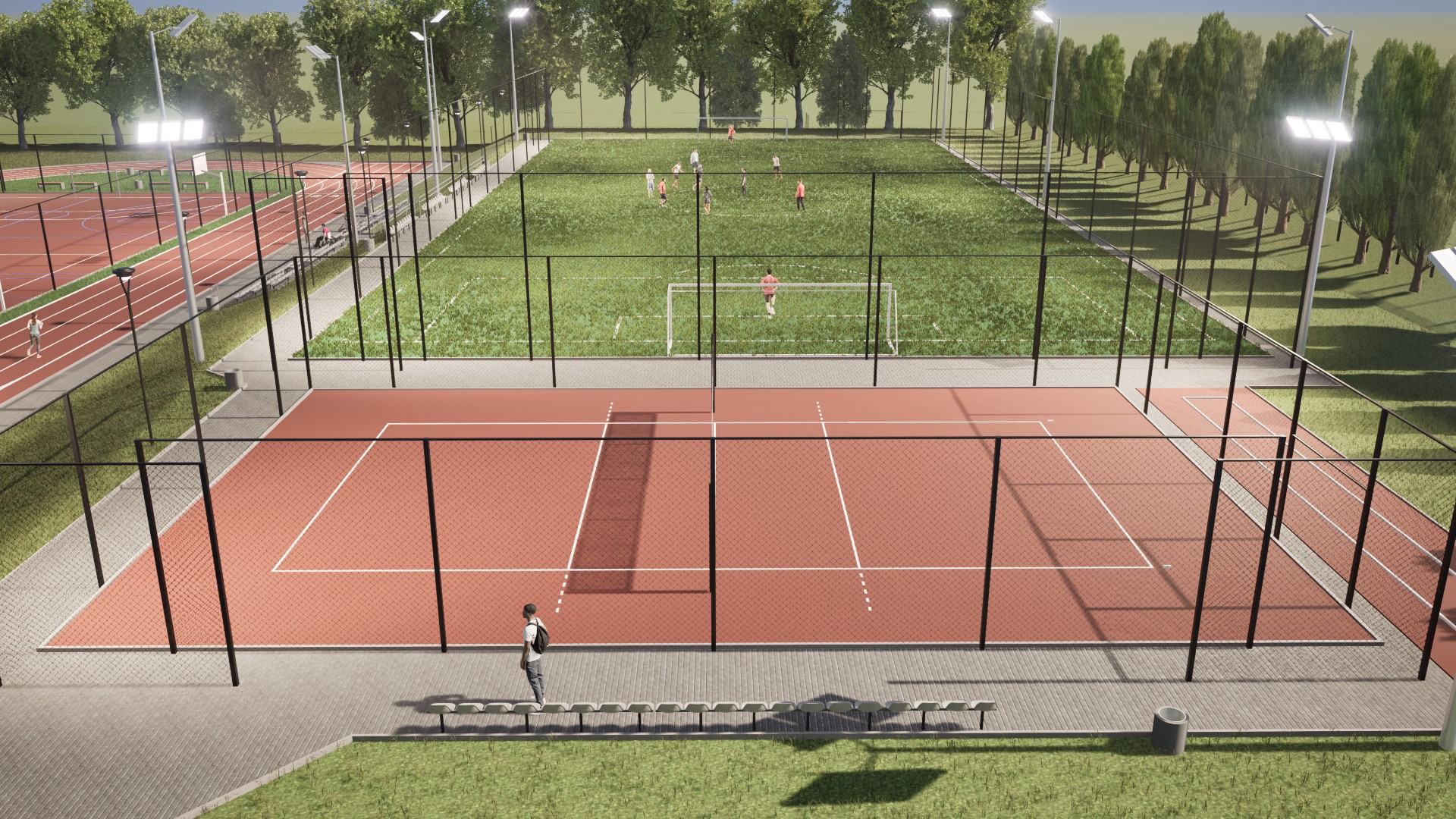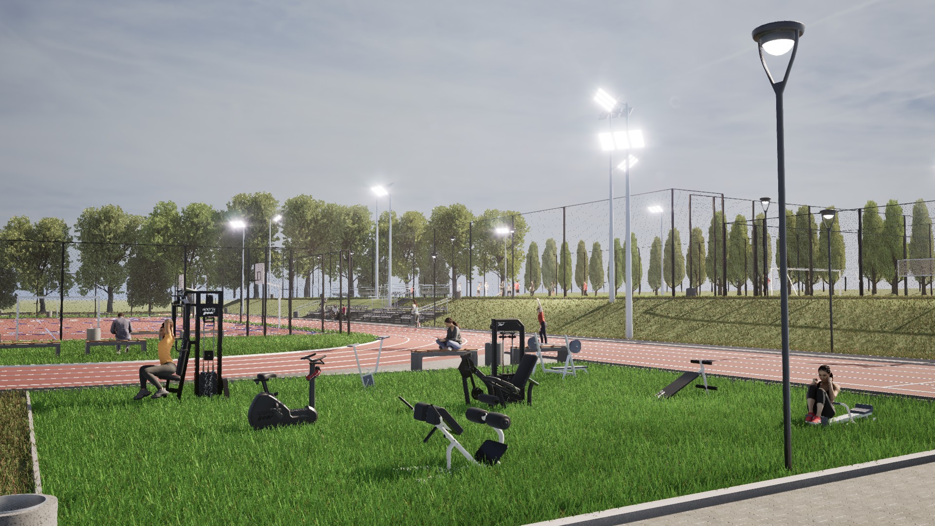 W ramach kompleksu powstanie m.in. boisko do piłki nożnej ze sztuczną trawą, boisko do piłki siatkowej, boisko wielofunkcyjne do piłki ręcznej i koszykówki. Będą też bieżnie: czterotorowa i okrężna wokół boiska, skocznia do skoku w dal, rzutnia do pchnięcia kulą, a także siłownia plenerowa z urządzeniami do ćwiczeń.Kompleks zostanie wyposażony w trybuny oraz elementy małej architektury. Obiekt będzie ogrodzony i oświetlony.