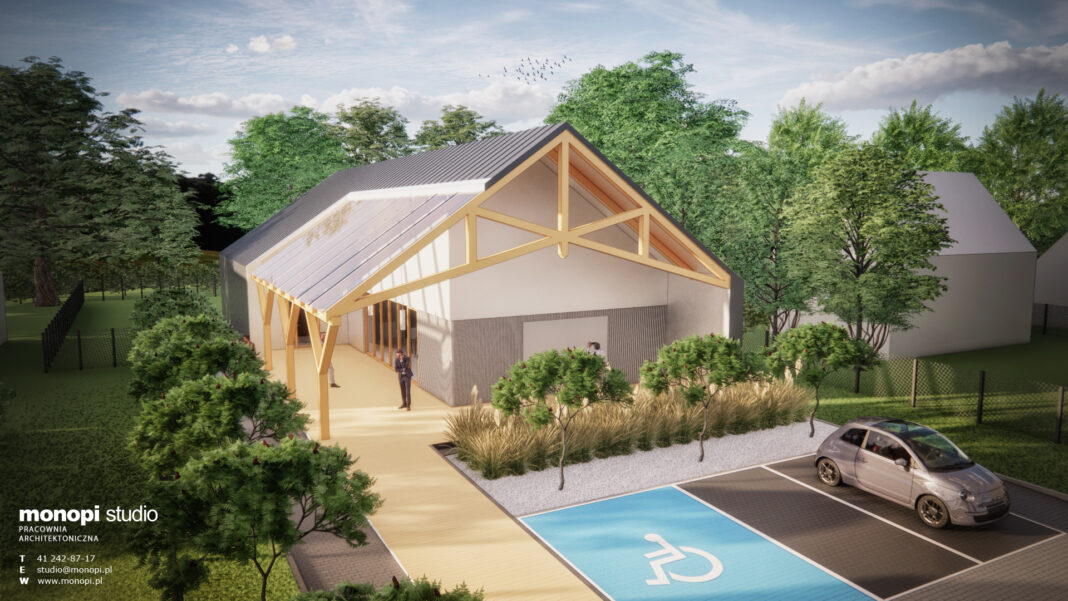 W nowoczesnym budynku zaplanowano między innymi salę konferencyjną, kuchnię