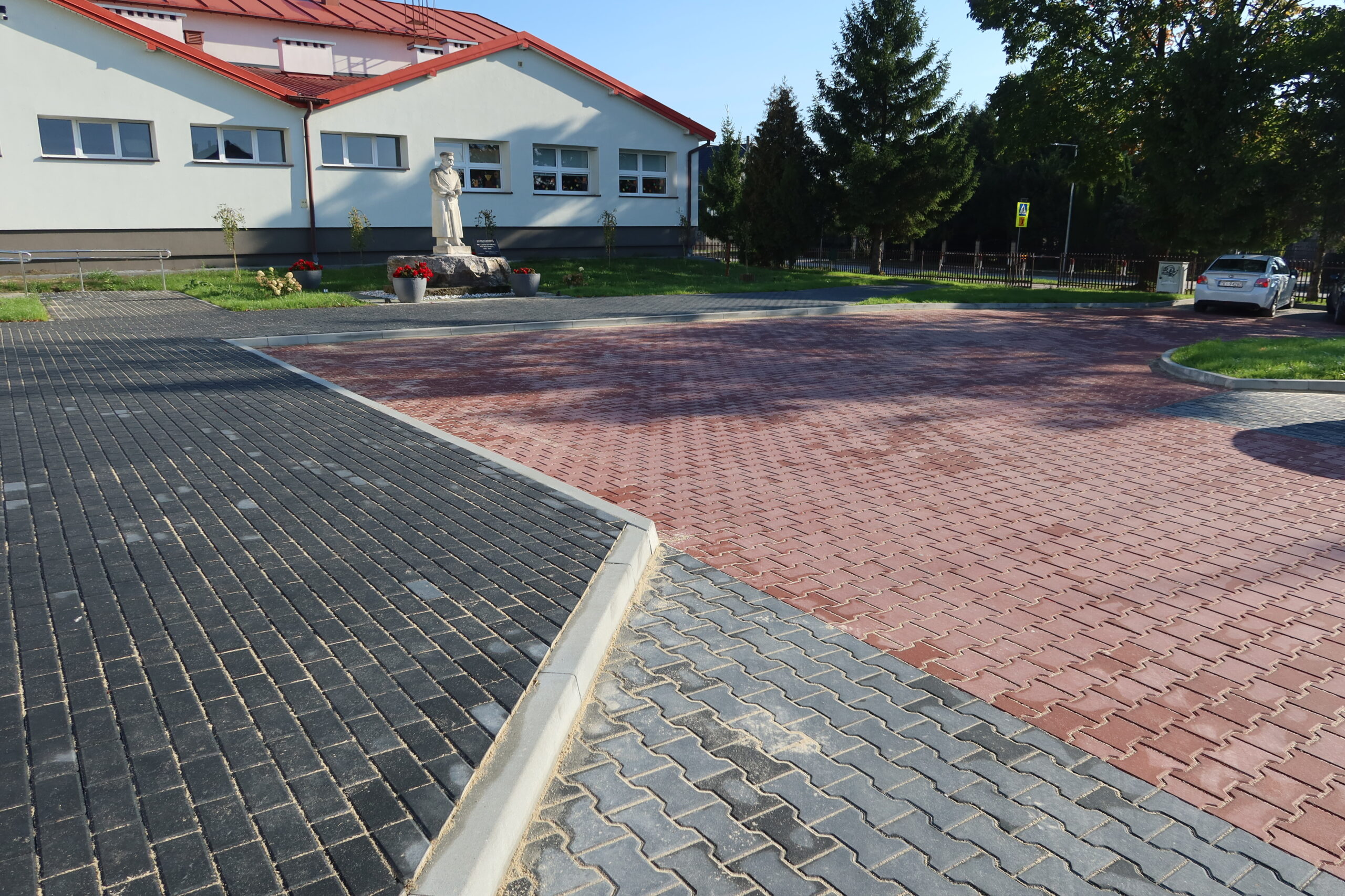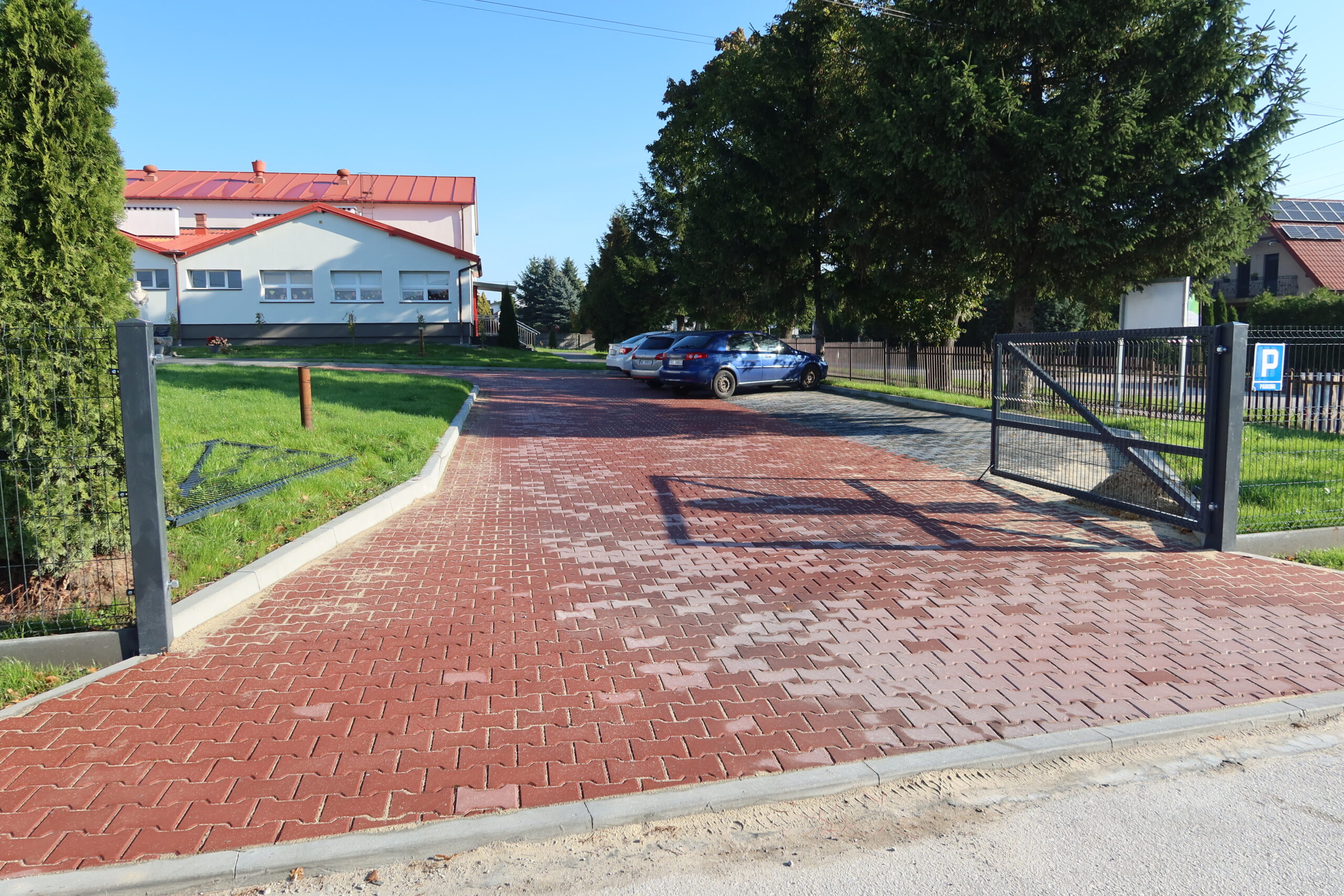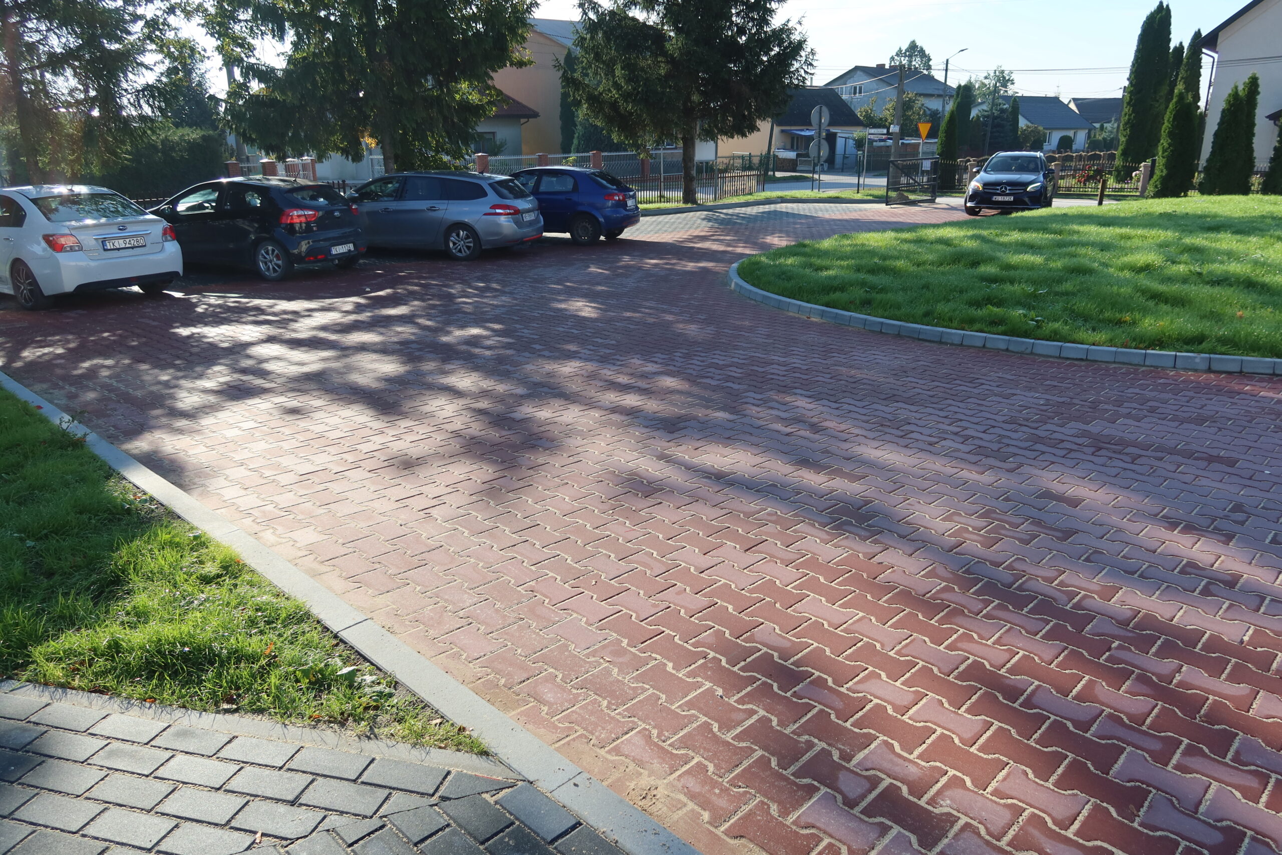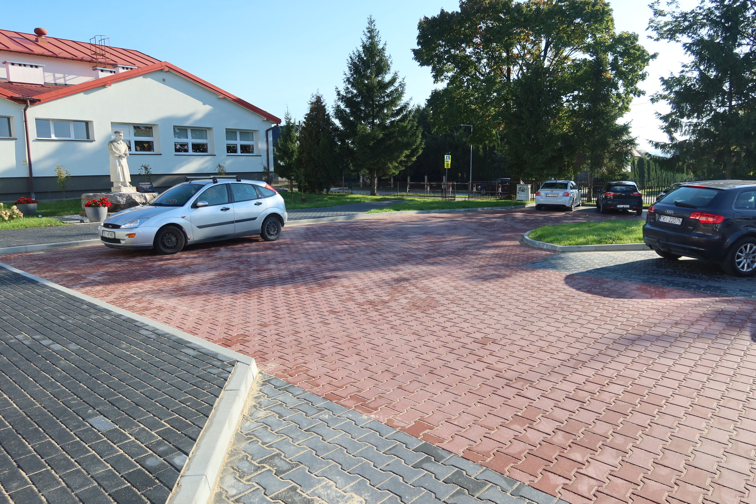 Budowa parkingu przebiegała sprawnie. Wykonano wykopy i podbudowę z piasku stabilizowanego cementem oraz kruszywa, a następnie ułożono nawierzchnię z kolorowej kostki w odcieniach szarości, czerwieni i grafitu. Zadbano także o obrzeża i krawężniki betonowe. Teren wokół został uporządkowany i obsiany trawą.